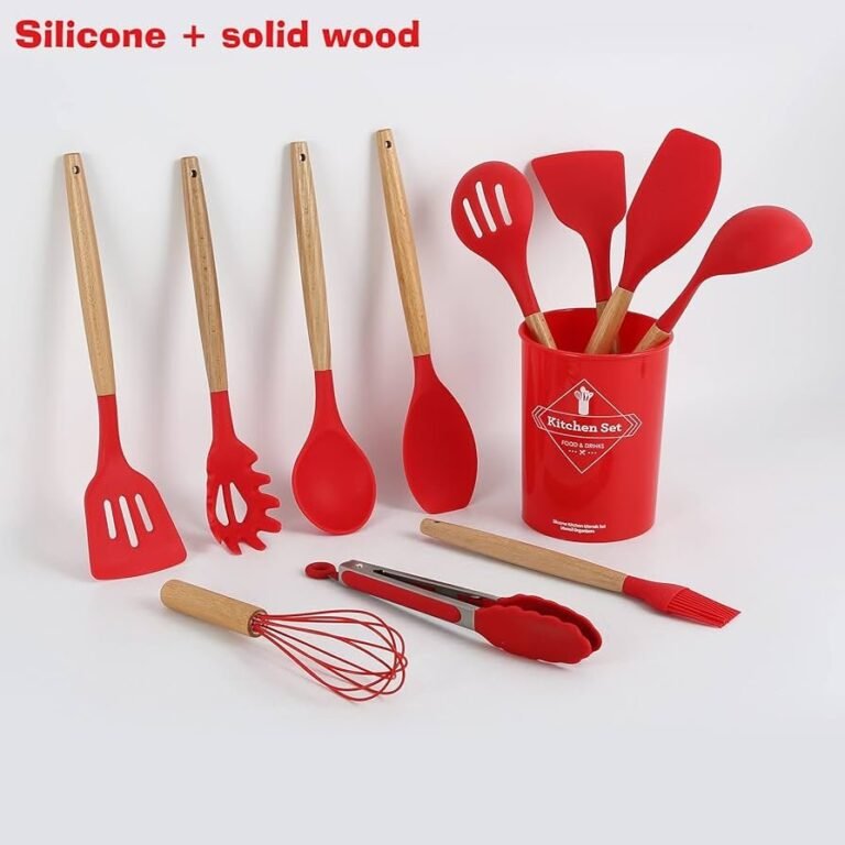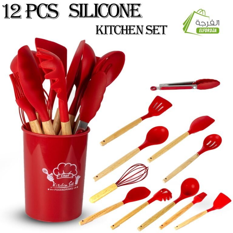 - مجموعة أدوات مطبخ: 12 قطعة من أدوات المطبخ المصنوعة من السيليكون تشمل: 4 ملاعق ، ملعقة مشقوقة ، ملعقة مشقوقة ، ملعقة تقديم المعكرونة ، فرشاة ، خفق ، ملقط. مع قاعدة لجميع احتياجاتك للطهي.