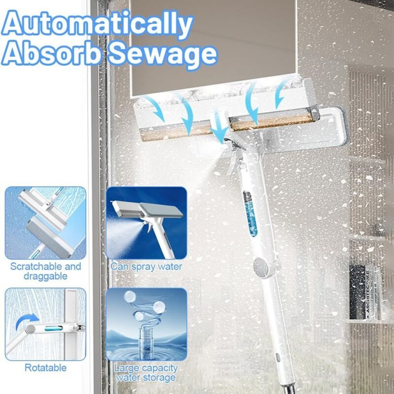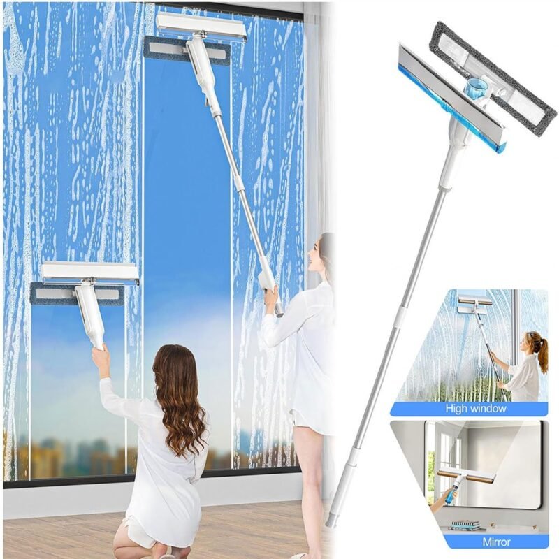 Raclette de fenêtre avec long manche et un spray de nettoyage 3 en 1 avec lame en caoutchouc – منظف زجاج قابل للتمدد 3في1