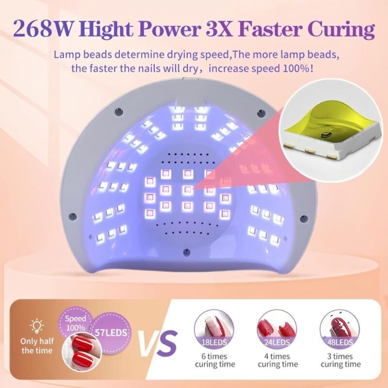 Lampe à Ongles UV LED 268W avec Capteur Automatique et 4 Minuteries – مصباح العناية بالأظافر