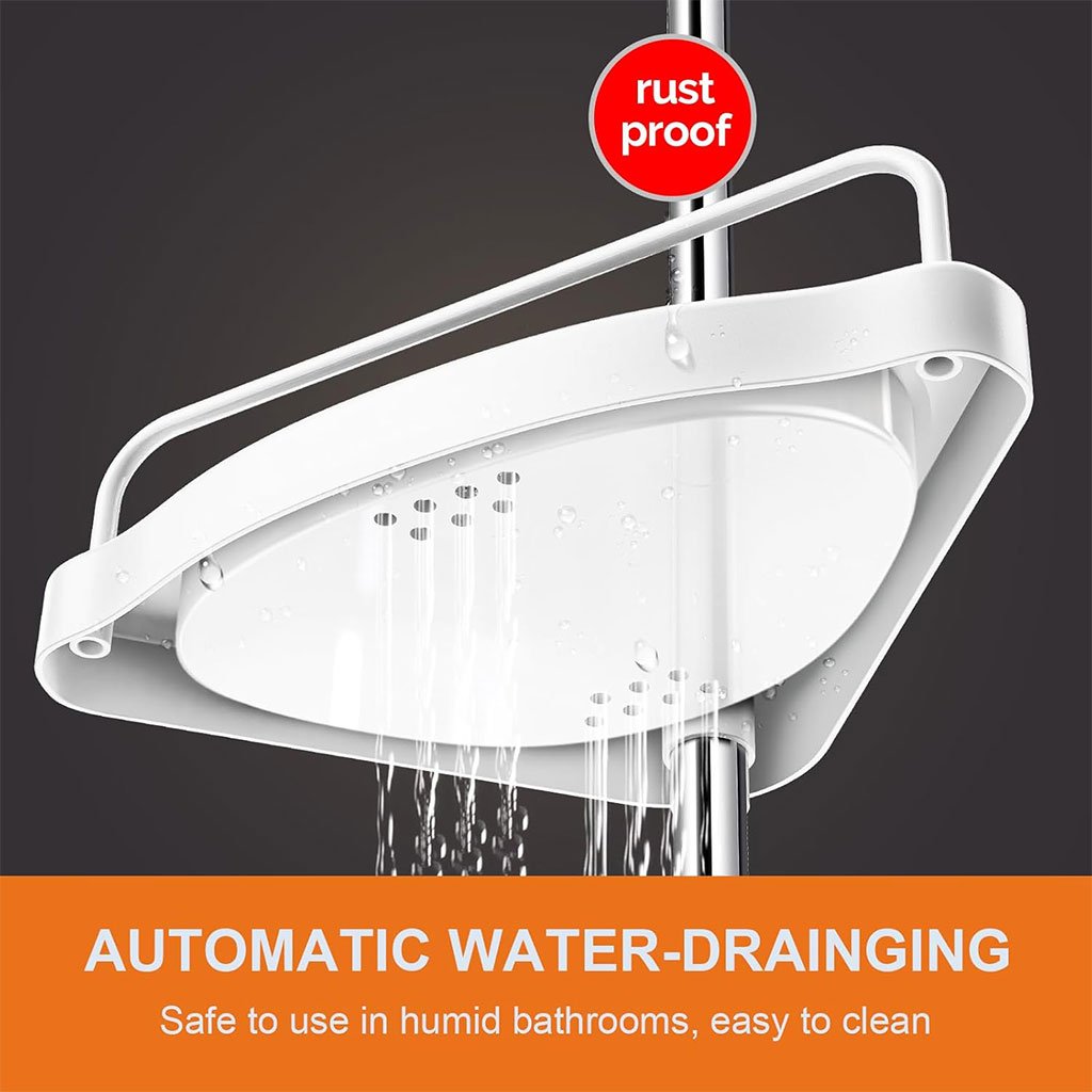 مصنوع من البولي بروبلين المتين غير السام. 4 أرفف ذاتية التصريف على شكل مثلث. 3 خطافات للمناشف أو إسفنج التنظيف. سهل التجميع.