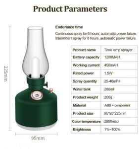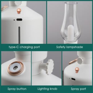 فواحة عطرية على شكل فانوس مضيئ Diffuseur d’huile essentielle pour maison et bureau, lampe rétro, humidificateur d’air électrique, vaporisateur à brume fraîche RF/LA-0621