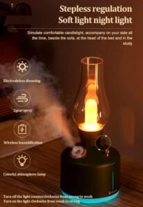 – مصباح ليد بفواحة لتنقية الهواء لاسلكية قابلة للشحن، متعددة الألوان، اسود – ابيض – اخضر.