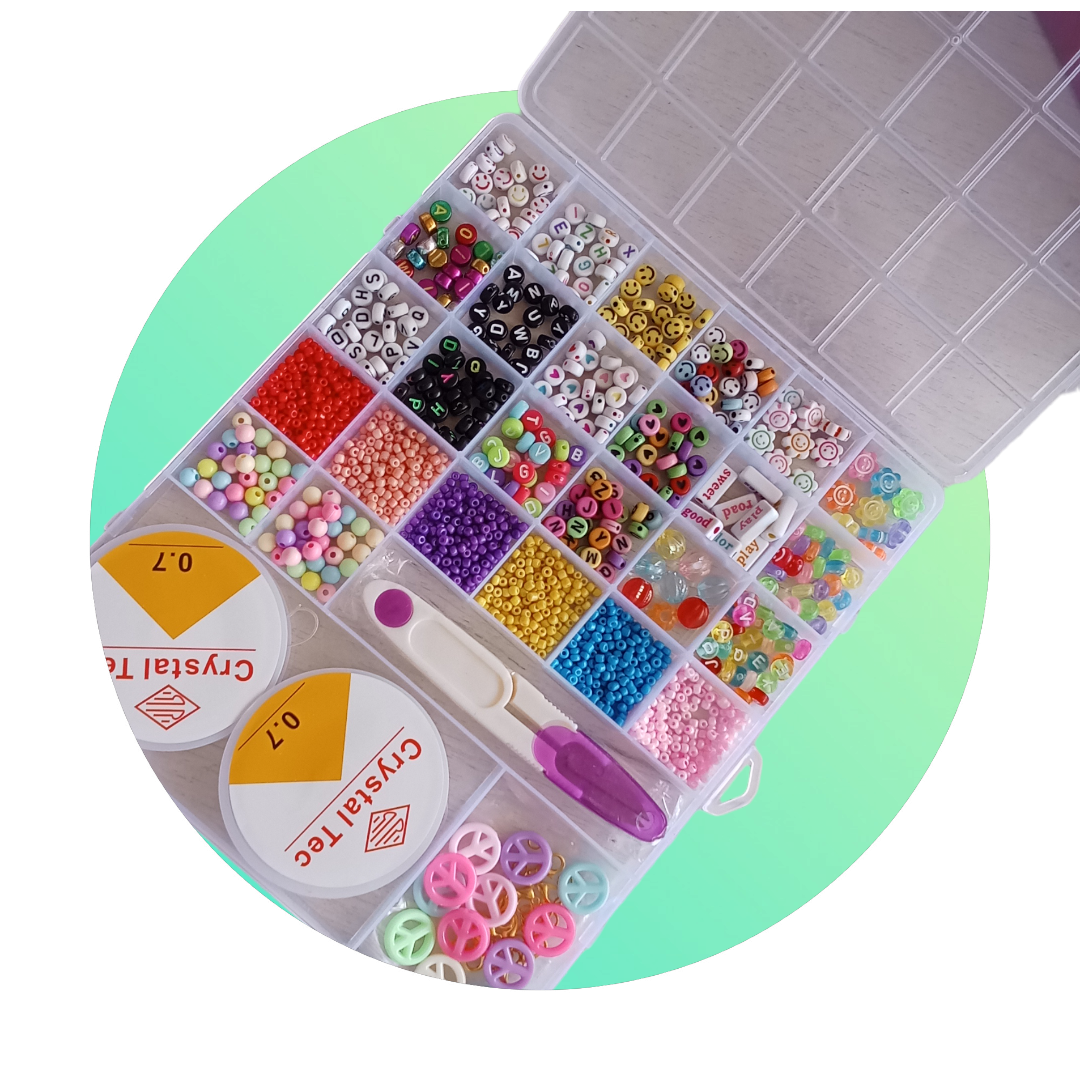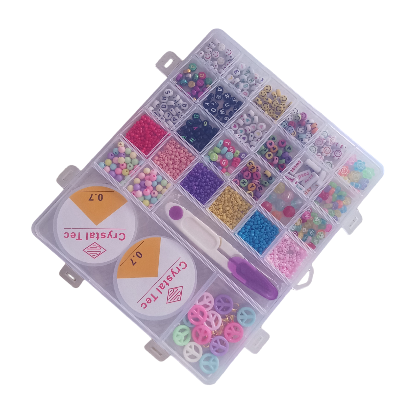 مجموعة بذور الزجاج و حبات الأحرف مع أدوات لصنع المجوهرات للأطفال 24 فتحة : Ensemble de pendentifs et de lettres pour la fabrication de bijoux enfant 24 grilles 889-51A
