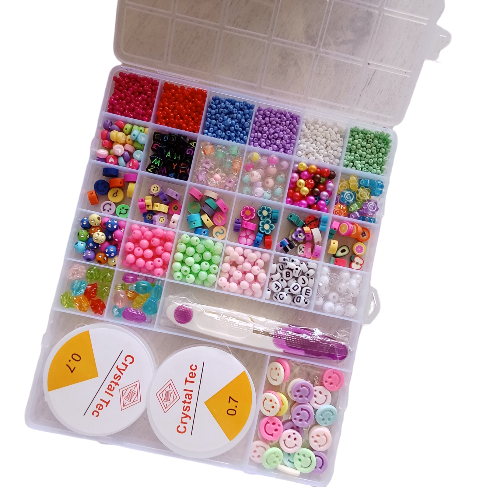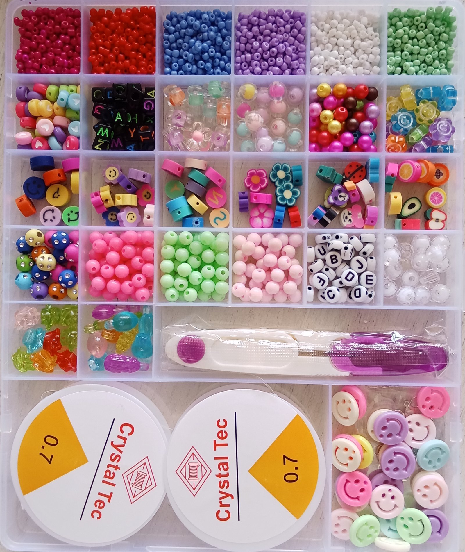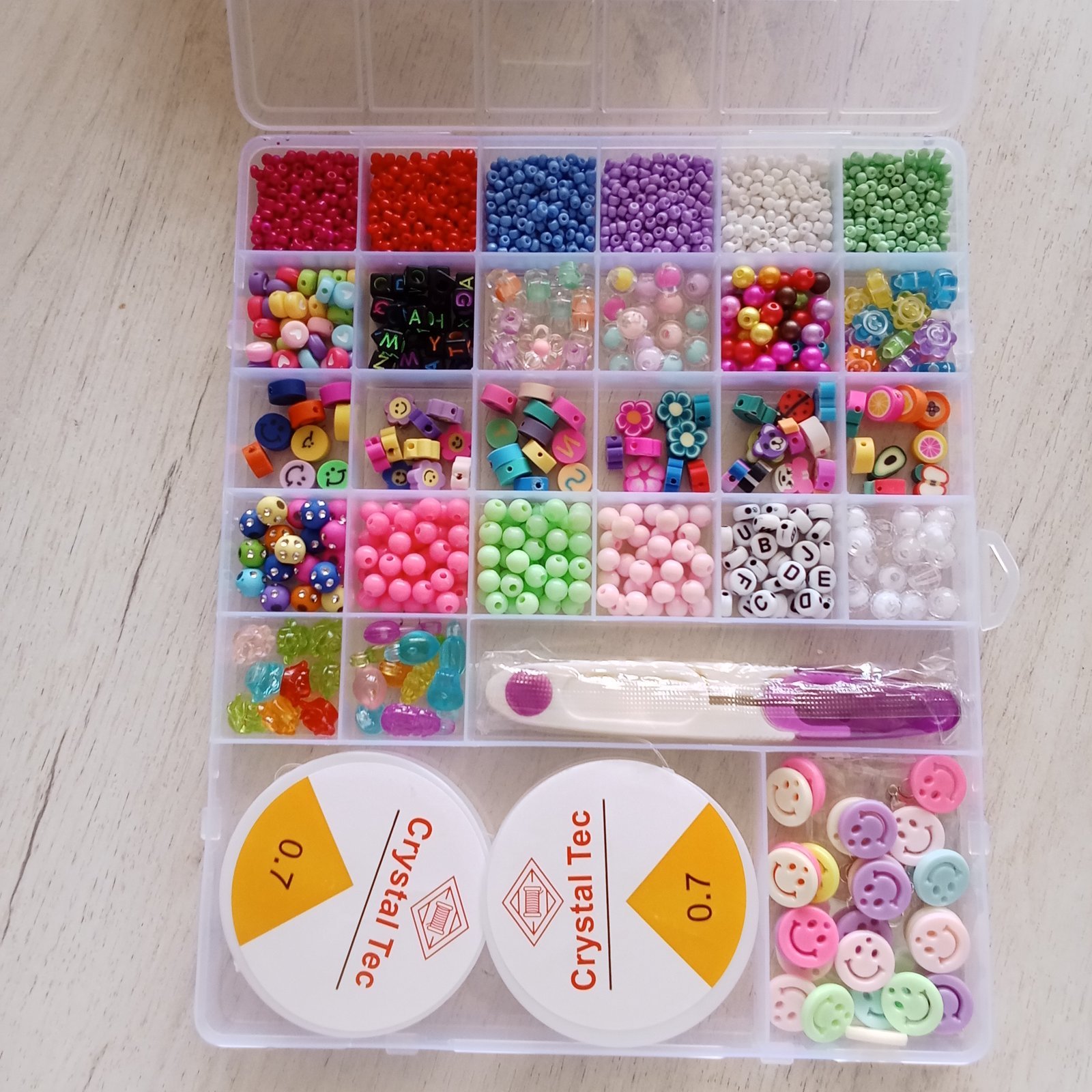 مجموعة خرز الطين وبذور الزجاج مع أدوات لصنع المجوهرات للأطفال 24 فتحة : Ensemble de pendentifs pour la fabrication de bijoux enfant 24 grilles RF-0158
