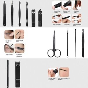 مجموعة مانيكير وباديكير احترافية 12 قطعة: تتضمن هذه المجموعة أدوات قص أظافر يمكن أن تلبي احتياجاتك اليومية ولديها وظائف متعددة، بما في ذلك العناية باليدين والقدمين والعناية بالوجه، بالإضافة إلى أدوات مقص متعددة الوظائف.