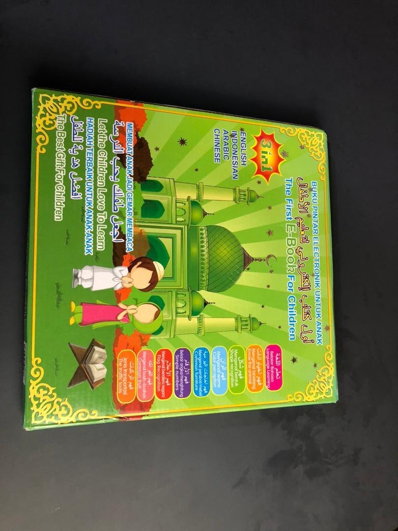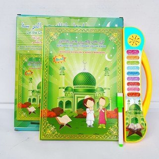 كتاب تعليمي تفاعلي للأطفال (باللغتين العربية والإنجليزية):يساعد الطفل على تعلم الحروف، الأرقام، الأشكال والرياضيات.يعمل باللمس والقلم الإلكتروني.ينمي التفاعل بين الحواس، مهارات السمع والرؤية.يحتوي على رسومات وألوان جذابة للقضاء على الملل.يشمل: الحروف، الكلمات، وسائل النقل، الفواكه، الخضار، الحيوانات، الألوان، الرياضة، الحساب.تعليم الخطوات الدينية: الوضوء، الصلاة، الأدعية اليومية.يشمل لوح للرسم وقلم سبورة.يعمل بـ 3 بطاريات AA (غير مرفقة).المقاس: 29×29 سم. وصف المنتج: كتاب تعليمي تفاعلي للأطفال لتعليم وتعريف الطفل بأساسيات اللغة العربية والإنجليزية والرياضيات والأشكال.كيف يعمل: ☑ يعمل عن طريق اللمس والصوت.☑ يعمل باستخدام قلم التأشير على الصور الملونة.ينمي مهارات طفلك: ☑ يساعد على تنمية قدرة الطفل على تحفيز التفاعل بين الحواس المختلفة.☑ يساعد على التدريب على الاستماع.☑ يساعد على التحفيز البصري.☑ يزيد من مهارات طفلك التعلمية ويزيد متعة التعلم والمعرفة.☑ يساعد على معرفة الأشكال وكيفية رسمها.يضفي متعة للتعلم: ☑ يحارب الملل.☑ يزيد من متعة تلقي المعلومة.متعدد المجالات: ☑ الحروف والكلمات.☑ أدوات المواصلات.☑الفواكه والخضراوات.☑ الحيوانات.☑ الأشكال والألوان.☑ أدوات الاستخدام اليومية.☑ الترفيه والرياضة.☑ الحساب.☑ الأعداد والكميات.يعمل على تثقيف الطفل دينيًا: ☑ تعليم خطوات الصلاة.☑ تعليم خطوات الوضوء.☑ تعليم دعاء الاستيقاظ ودخول الخلاء وبعد الوضووء وقبل الطعام وبعده، ولبس الثوب، ودخول وخروج المسجد، ودعاء السفر، ودعاء زيارة المريض.يوجد مع الكتاب: ☑ سبورة رسم وقلم سبورة مع الكتاب.متوفر بلغتين: ☑ اللغة العربية.☑ اللغة الانجليزية.يعمل بالبطاريات: ☑ يعمل الكتاب بـ3 بطاريات AAمقاسات المنتج: ☑ 29*29سم.