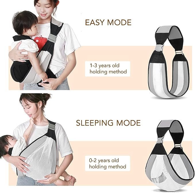 • سهولة الرضاعة: الحمالة القماشية للطفل سهلة الاستخدام للرضاعة وتعمل أيضًا كدرع خصوصا للأمهات أثناء الرضاعة، يمكن ارتداؤها أثناء الرضاعة.