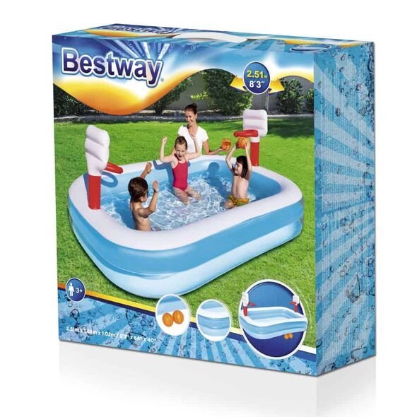حوض السباحة للأطفال قابل للنفخ مع مرمى كرة السلة Piscine Gonflable avec Basketball Pour Enfants 251x168x102cm Bestway#54122