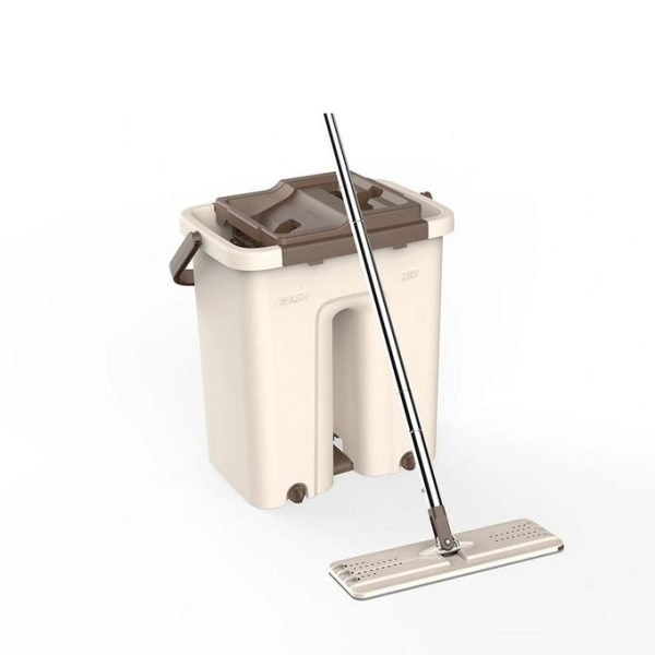 Un seau de lavage compact composé de deux chambres, pour un nettoyage rapide, efficace et sans effort pour recueillir la saleté, la poussière, les cheveux et les taches, adapté à différents types de sols.