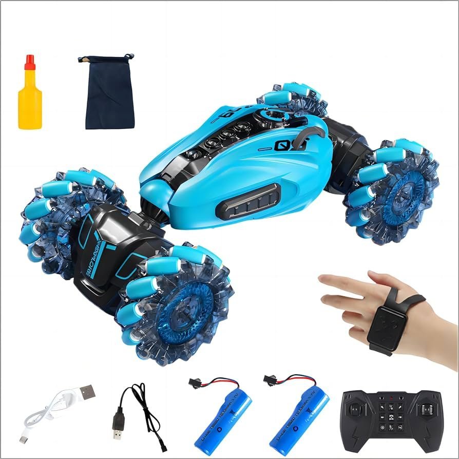سيارة منقلبة مع حساس تحكم بالإيماءات و جهاز تحكم عن بعد مع إضاءة وموسيقى ورش : Voiture cascadeuse avec capteur de gestes et télécommande avec lumières, musique et pulvérisation 2277-2B
