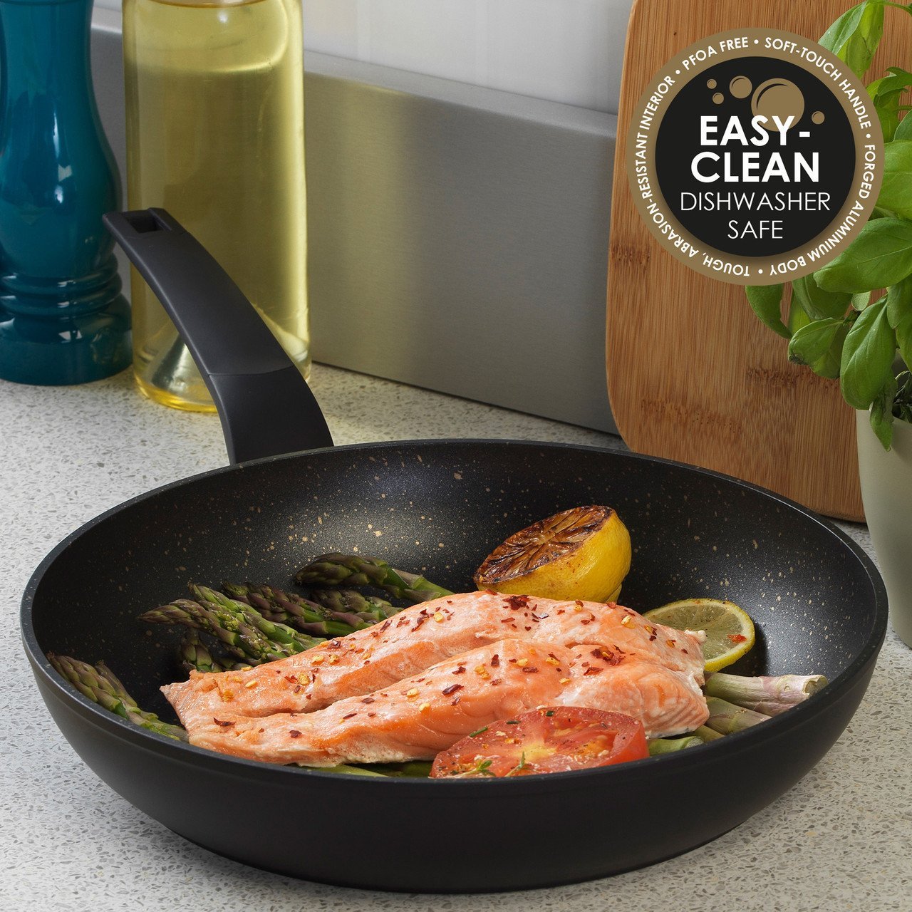 - طلاء غير لاصق من الرخام: سهل التنظيف ويسمح بطهي صحي بدون زيت أو زبدة