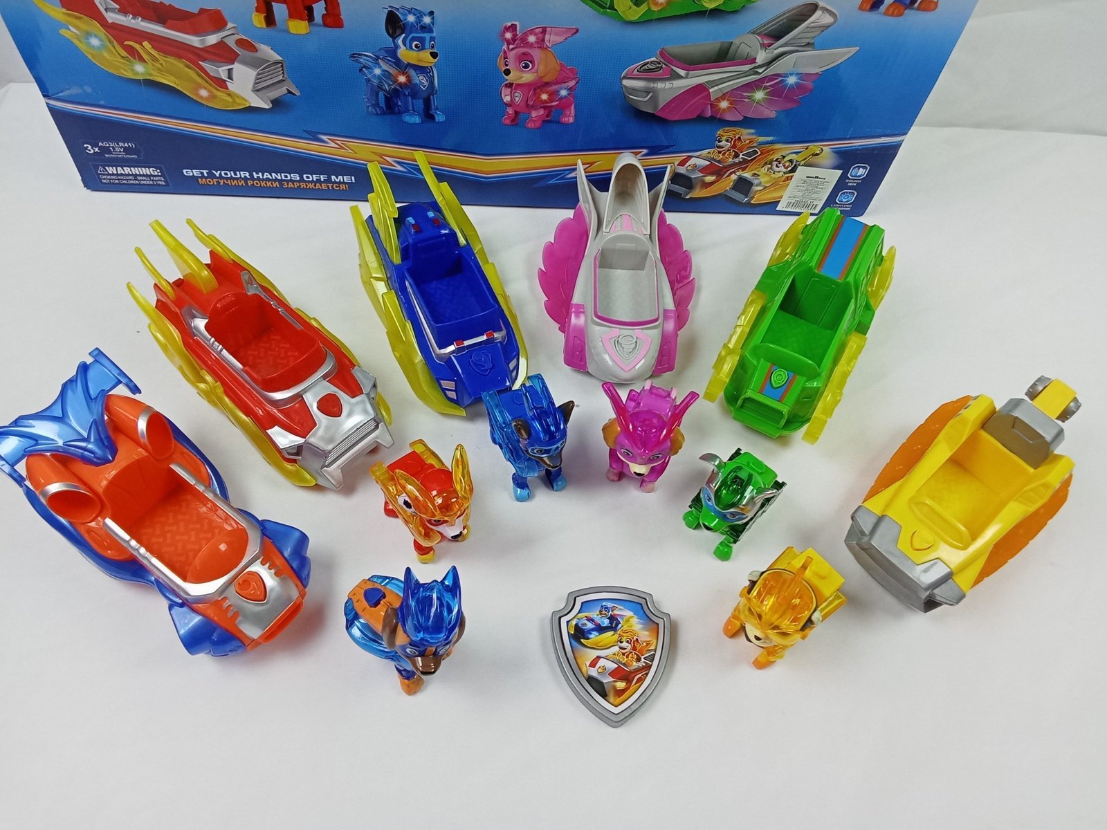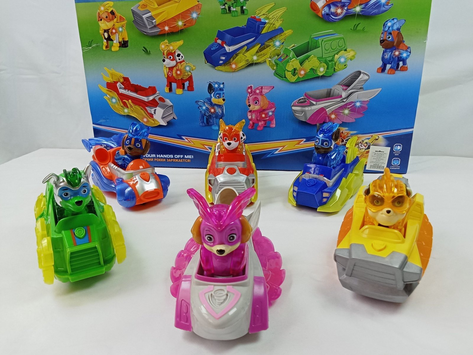 استمتع بتجربة عالم دورية المخلب الكامل مع مجموعة الألعاب هذه التي تضم 6 شخصيات مضيئة وسياراتهم الموسيقية