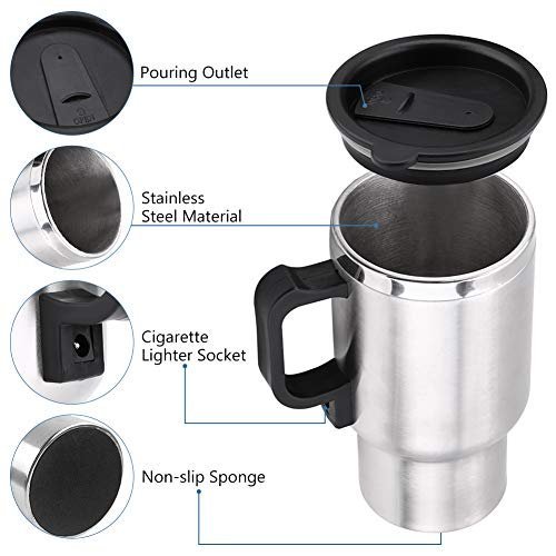 كوب تسخين كهربائي للسيارة للحفاظ على درجة حرارة المشروب حتى 65 درجة مئوية : Tasse isotherme pour voiture avec maintien de la température à 65°C – 450 ml RF/140Z