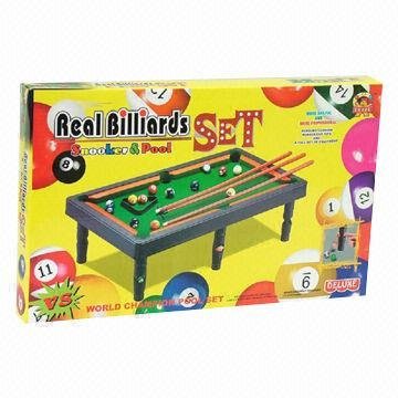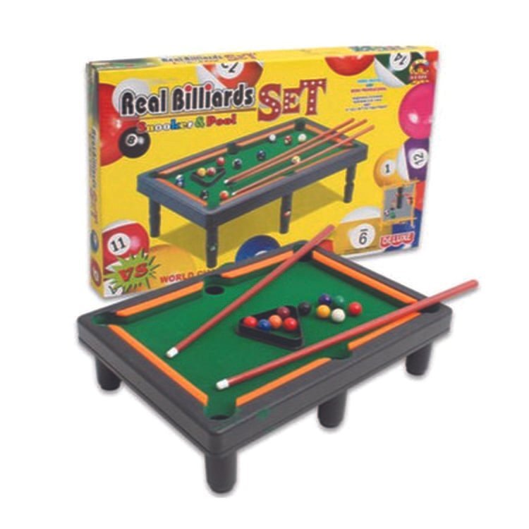 طاولة بلياردو مصغّرة واقعية المظهر, تتضمن المجموعة 2 عصا بلياردو ، ومسند عصا واحد، و 15 كرة مرقمة (ملونة/مخططة) ورف بلاستيكي , رائعة للأطفال الذين يتعلمون لعب البلياردو.