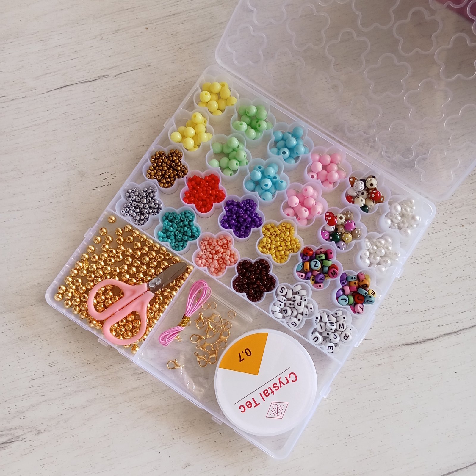 مجموعة بذور الزجاج و حبات الأحرف مع أدوات لصنع المجوهرات للأطفال 27 فتحة : Ensemble de pendentifs pour la fabrication de bijoux enfant 27grilles 2301421-6