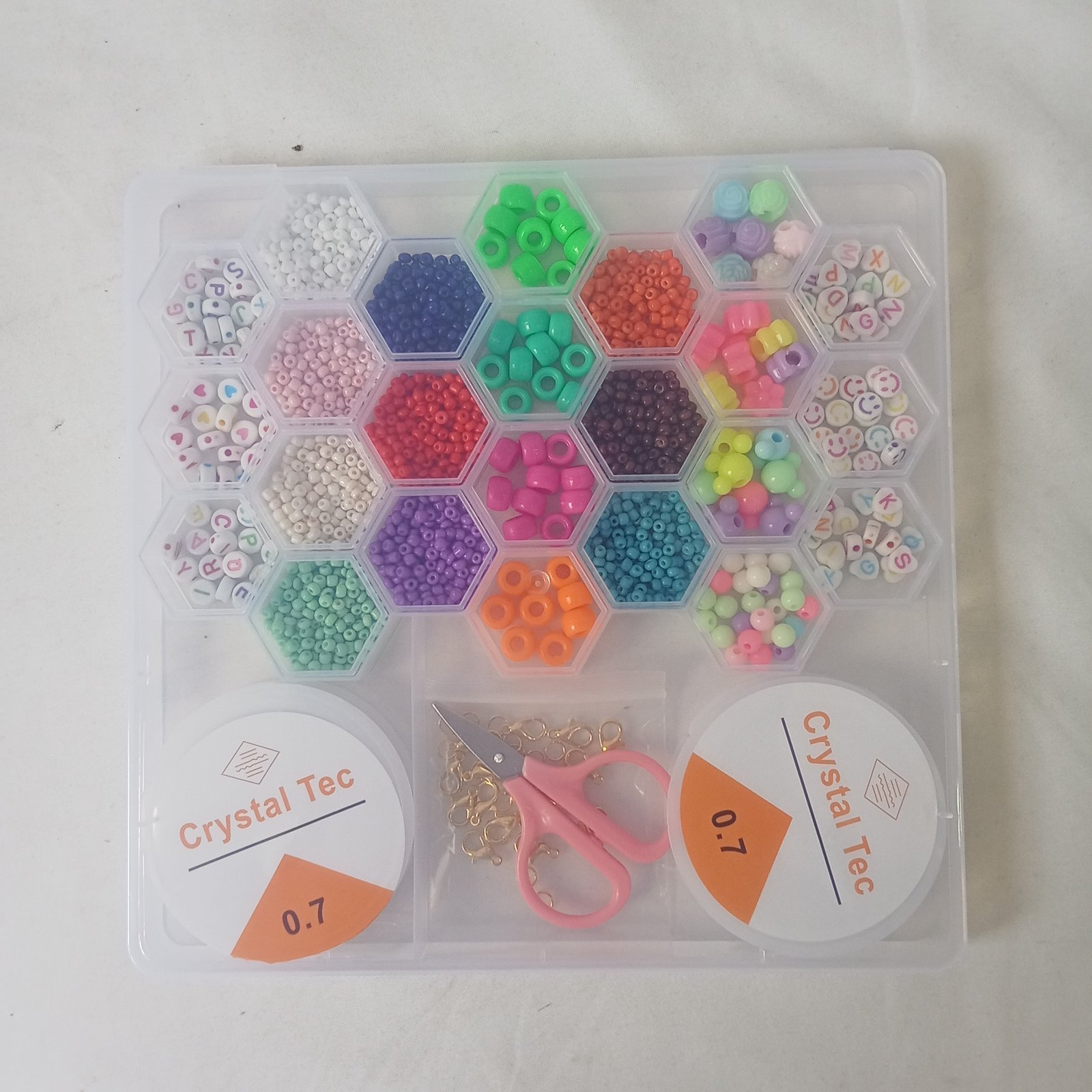مجموعة بذور الزجاج و حبات الأحرف مع أدوات لصنع المجوهرات للأطفال 27 فتحة : Ensemble de pendentifs pour la fabrication de bijoux enfant 27grilles 2301421-6