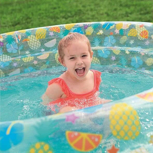 ما الذي يمكن أن يمنح أطفالك الصغار المرح والمتعة في حرارة الصيف؟ لابد أن يكون جوابك حمام سباحة بارد ومنعش، نقدم لك حوض السباحة من Bestway الخاص بالأطفال الصغار، تصميم لطيف محبب للبنات والأولاد برسومات 3D مع اشكال ملونة توضع في قاع المسبح لإضافة المتعة والحماس، بالإضافة الى نظارتين سباحة، كما أنه آمن بعمق ملائم للأطفال الصغار، لا داعي للانتظار أكثر امنح طفلك ما يستحقه من متعة وانتعاش في أجواء الصيف الحارة.