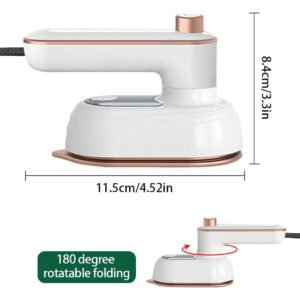 Fer à vapeur portable rotatif à 180 degrés pour tissus et vêtements, adapté à une utilisation à la maison et en voyage.
