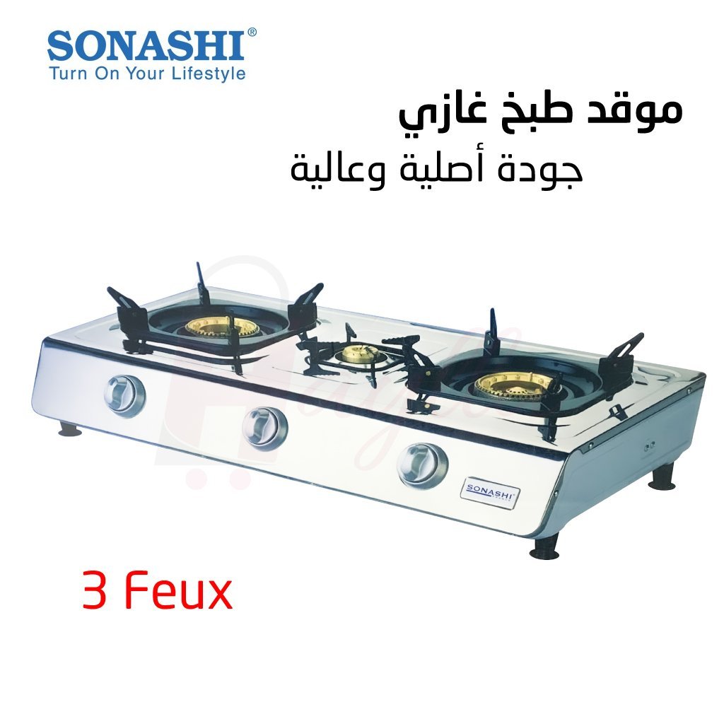 موقد طبخ غازي من سوناشي بنظام إشعال آلي وإستهلاك منخفض للغاز Sonashi Three Gas Burner / Stoves SGB-300