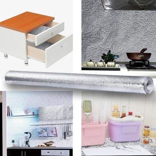 ورق ألومنيوم ذاتي اللصق: متين و مضاد للرطوبة و الزيت والماء ، غير سام وعالي اللمعان، قابل للإزالة بدون اتلاف الأسطح .