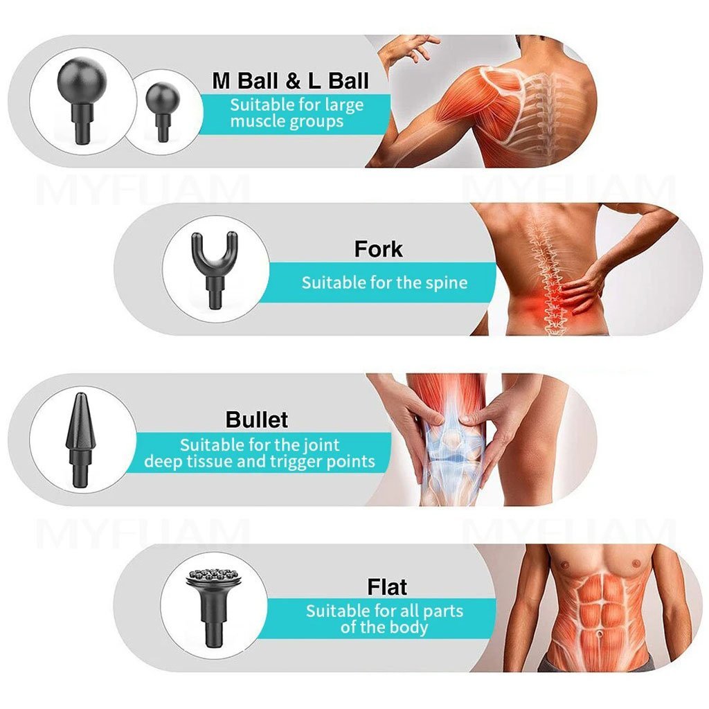 Appareil de Massage Musculaire Masseur de Muscle de Corps 32 Niveaux de Force Réglables 4 Têtes