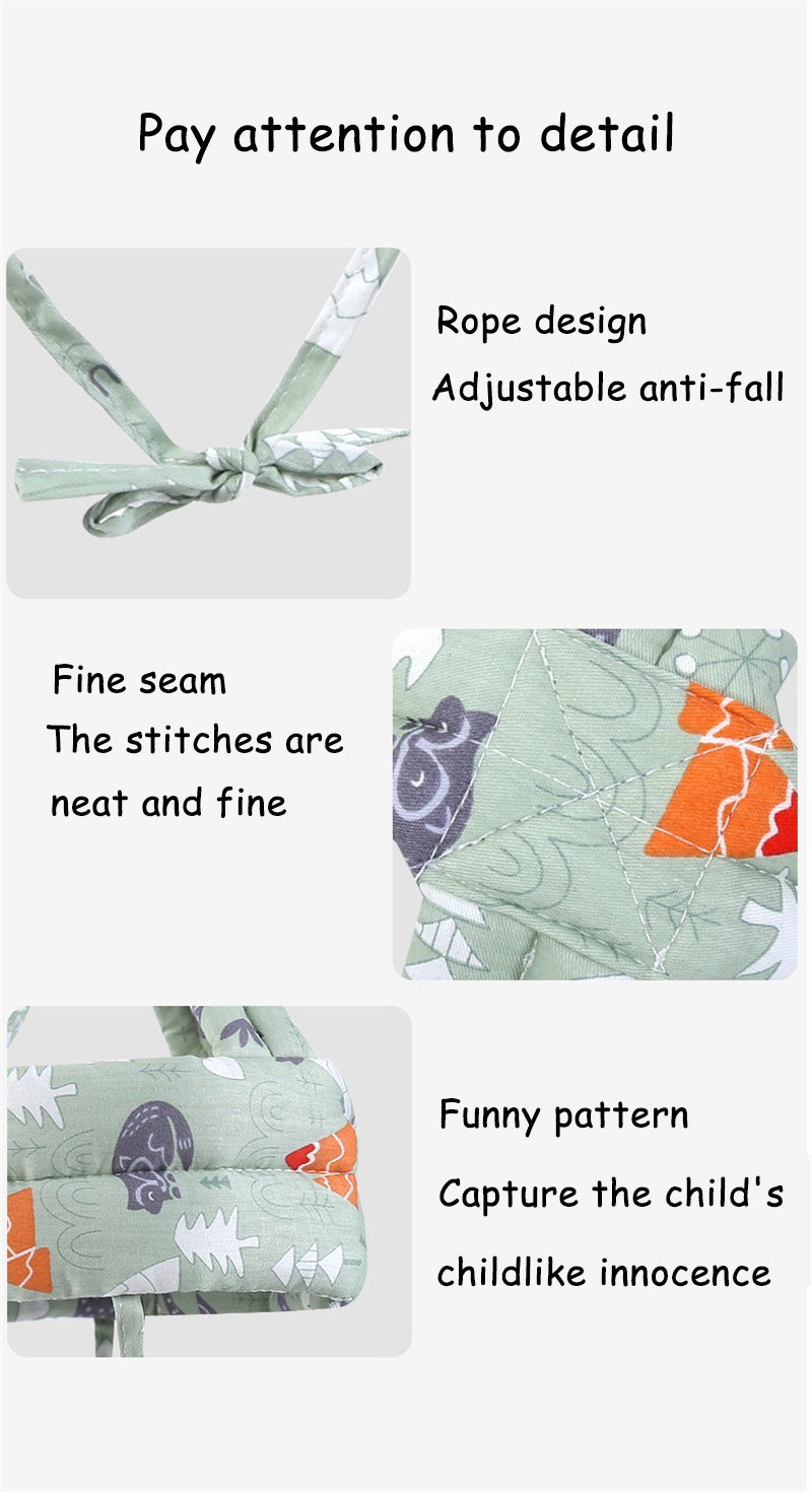 المميزات:100% جديدة وعالية الجودةالمادة: قطنالعمر: مناسبة للأطفال من 6 إلى 24 شهرًاالوصف:مصنوعة من إسفنج قطني عالي المرونة، سواء سقط الطفل للأمام أو للخلف فلن تقلق الأم بعد الآن.شريط حماية سميك يسهل منع الاصطدامات بدون خوف من الألم، ويخفف ضغط الصدمات تمامًا عند سقوط الطفل.يتمتع بخاصية امتصاص الصدمات لحماية رأس الطفل من الأذى عند السقوط.