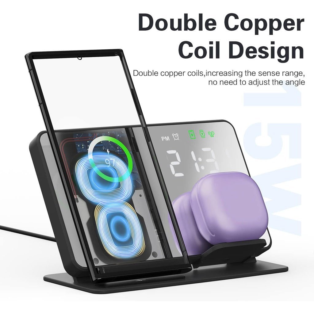 Chargeur sans fil 4 en 1 et station de charge ultra rapide avec Miroir Réveil integré