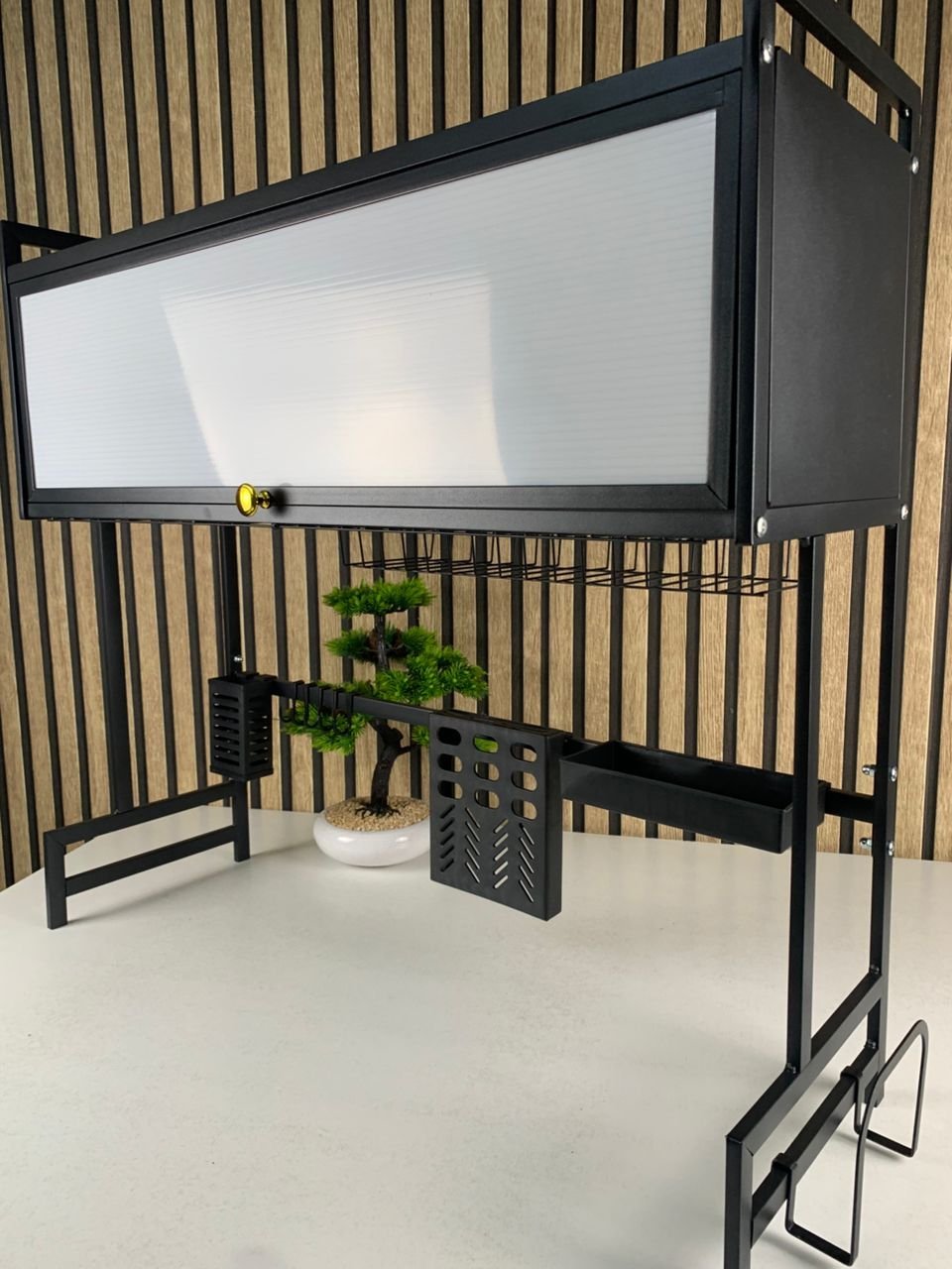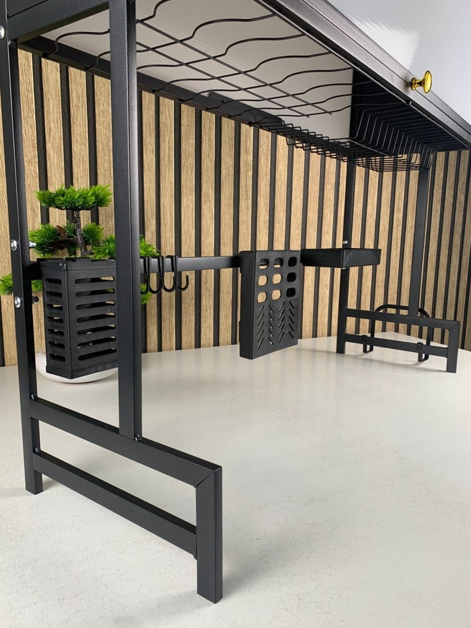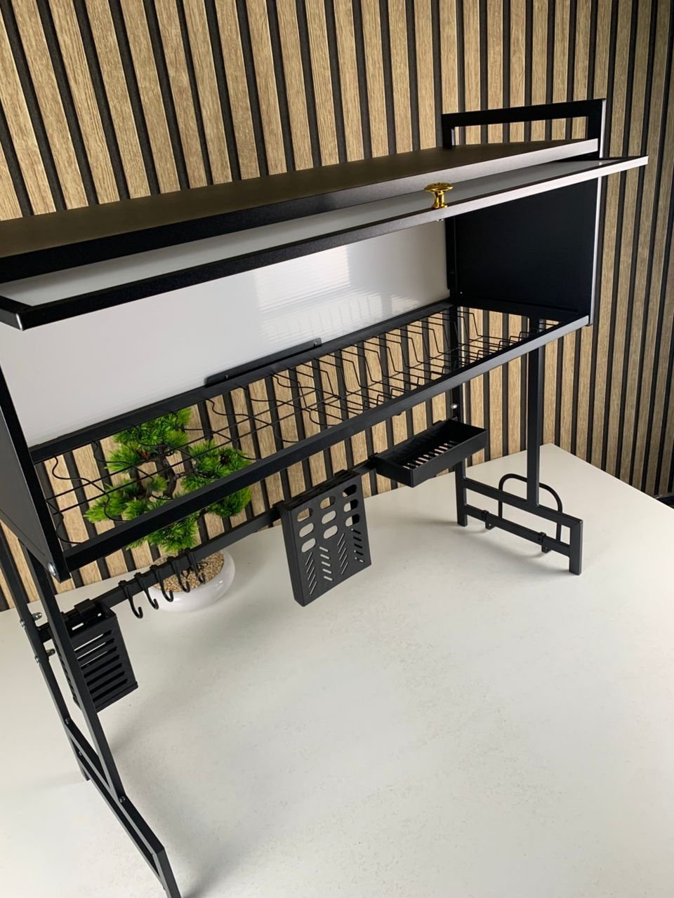 منشّف الأطباق المصمم للتركيب فوق الحوض يتميز بتصميم متعدد الوظائف يلبي مختلف احتياجات التخزين في المطبخ. مصنوع من الفولاذ المقاوم للصدأ عالي الجودة مع طلاء أسود ناعم، يتمتع بمتانة ممتازة ومقاومة عالية للصدأ، ما يضمن عمر استخدام طويل ويجعله قطعة أساسية في كل مطبخ.توفير مثالي للمساحة مصمم خصيصًا ليُركّب فوق الحوض، مما يساعد على استغلال مساحة المطبخ بأقصى قدر ممكن. يحتوي على سلة تخزين، حامل سكاكين، حامل لوح تقطيع، حامل أدوات المائدة، و6 خطافات، ليمنحك سطح عمل نظيفًا ومنظمًا وخاليًا من الفوضى.أبعاد المنتج أبعاد منشّف الصحون: 85 × 30 × 79 سم. الطبقة الثانية تتسع لـ 34 وعاء، 18 كأسًا، و11 طبقًا. يرجى التأكد قبل الشراء من أن ارتفاع الصنبور مناسب لعرض الحوض. لمزيد من التفاصيل، يُرجى الاطلاع على صور المنتج.سهولة التركيب والتنظيف مزود بفتحات براغي دقيقة، مع توفير البراغي ومفتاح ألين داخل العبوة. يمكن اتباع دليل التركيب المفصل لتثبيت سريع وسهل. جميع الملحقات قابلة للفك لسهولة التنظيف، ويكفي مسحها بقطعة قماش مبللة. وفي حال الحاجة، يمكن الرجوع إلى فيديو التركيب الكامل.