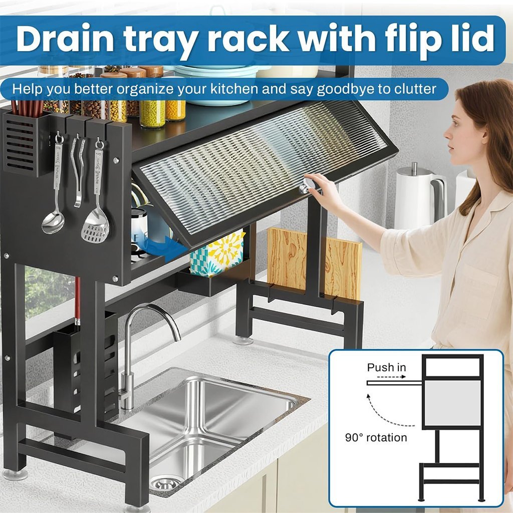 Égouttoir à vaisselle à 3 niveaux avec couvercle à poser sur l’évier – منظم أواني عصري للمطبخ