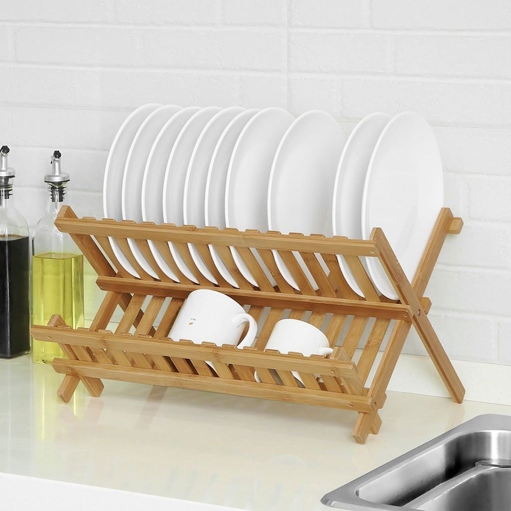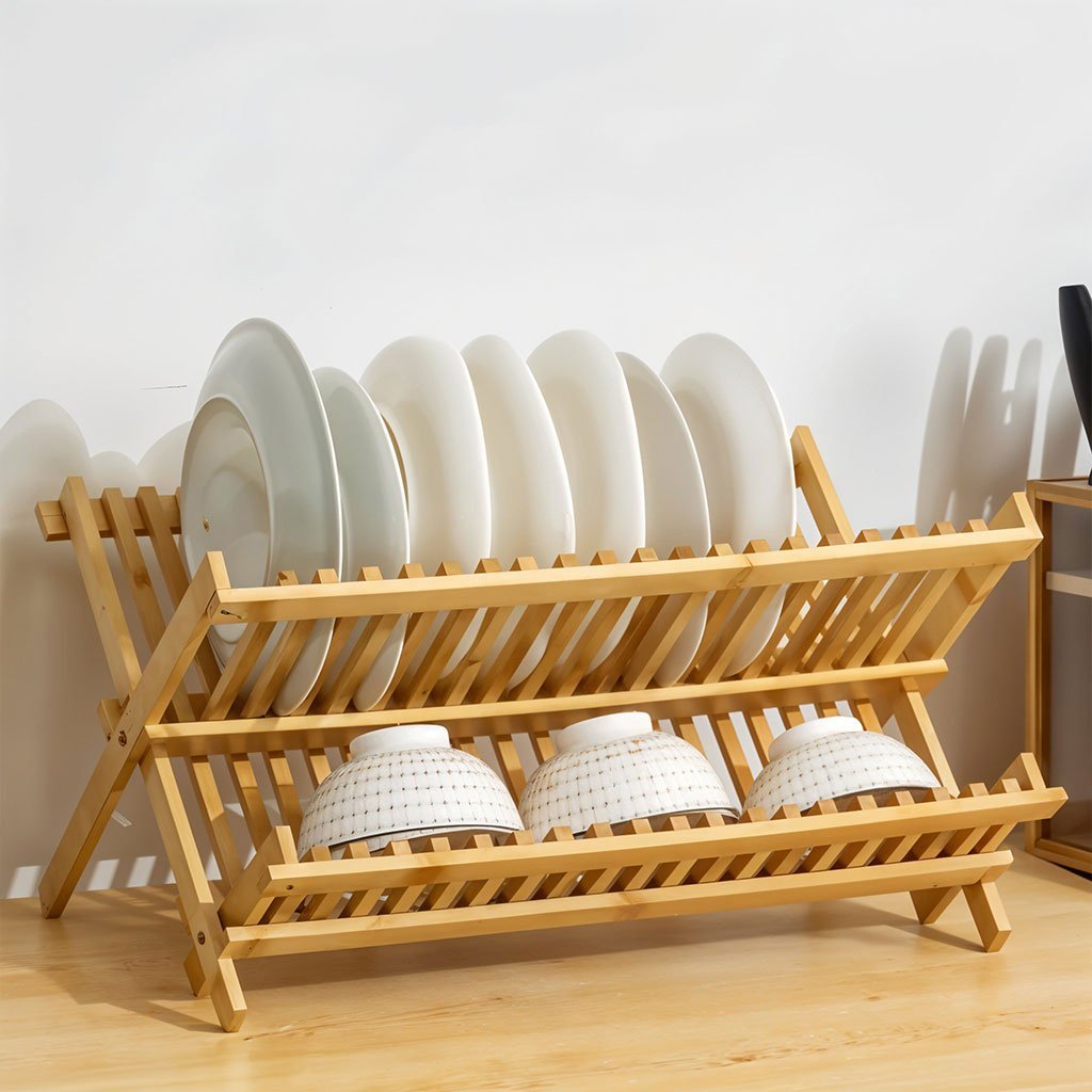 Égouttoir à vaisselle pliable en bambou de haute qualité – حامل أواني الغسيل