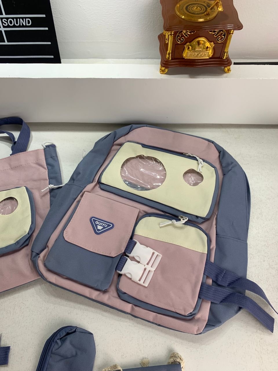 Ensemble de sacs d’école Kawai pour adolescents 5Pcs Guiyu V2 Bleu – محفظة 5 قطع كاواي أزرق