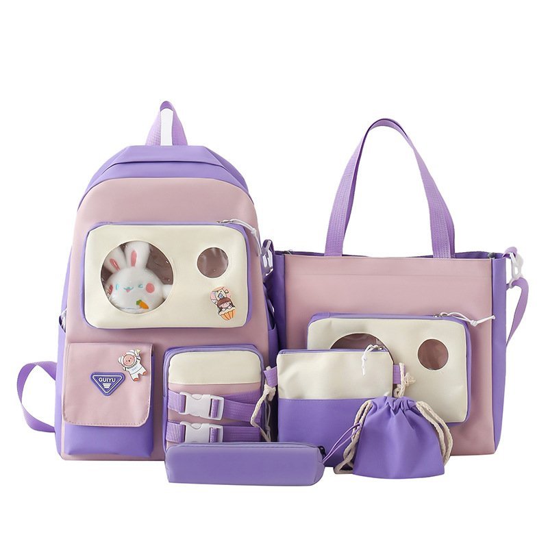 Ensemble de sacs d’école Kawai pour adolescents 5Pcs Guiyu V2 Mauve – محفظة 5 قطع كاواي بنفسجي