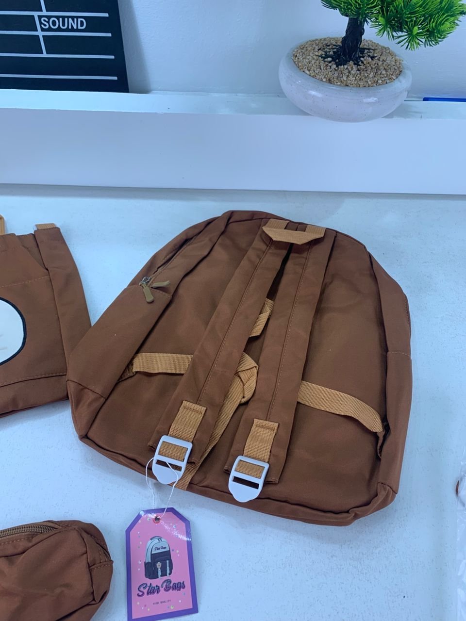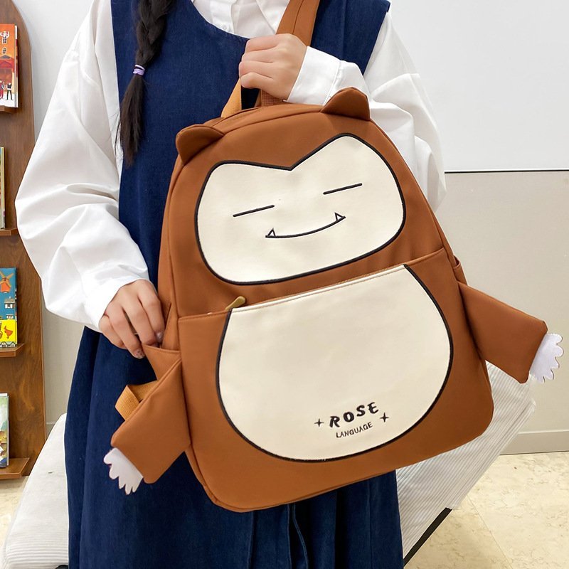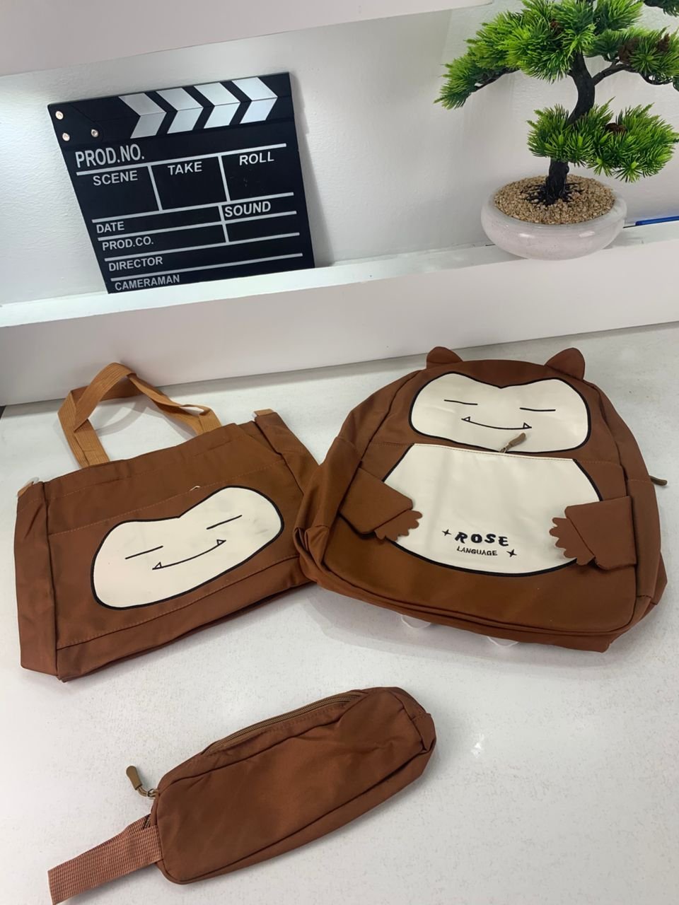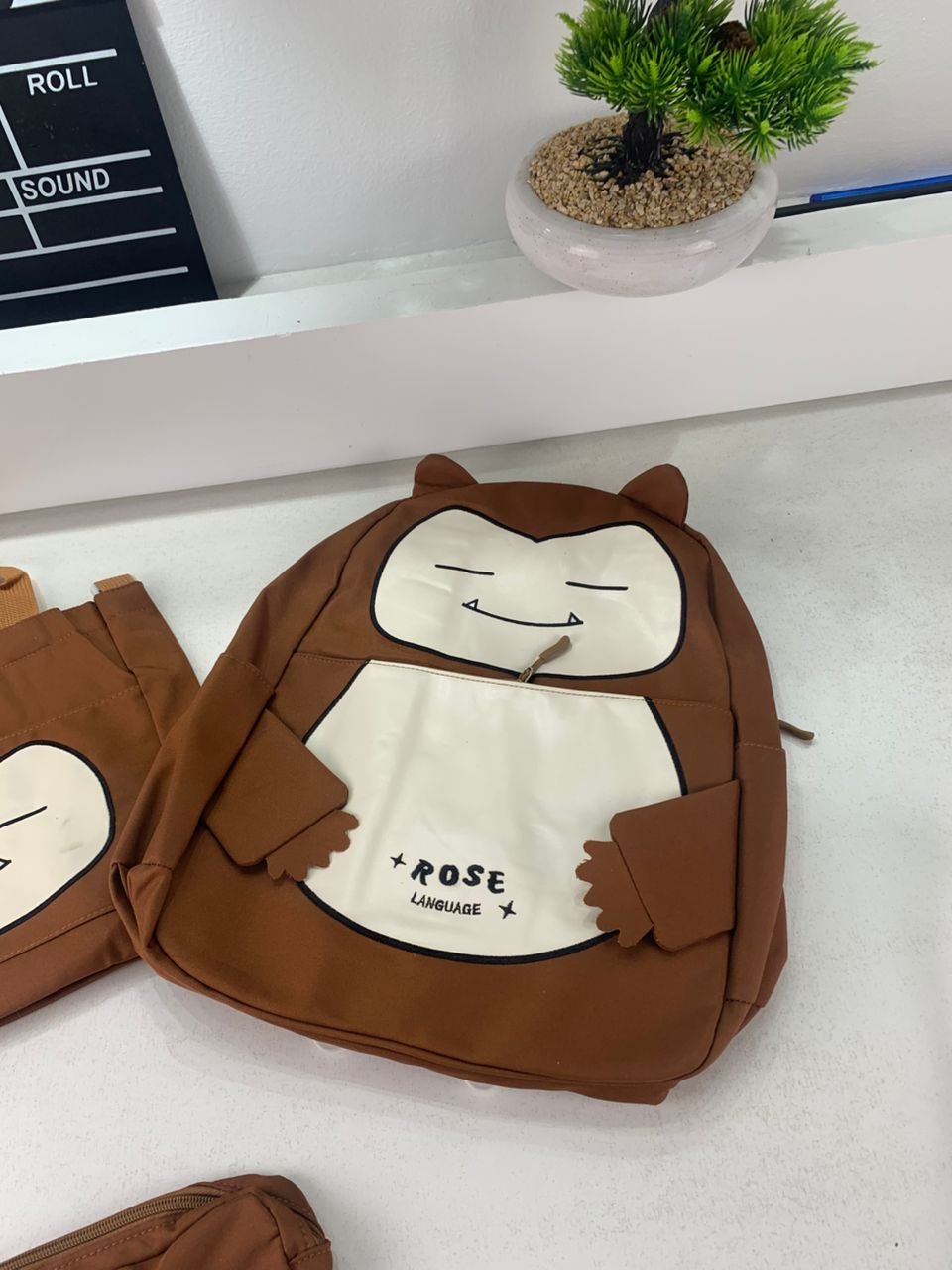 Ensemble de Sacs Snorlax 3Pcs Design Kawaii Marron – حقيبة مدرسية 3 قطع لون بني