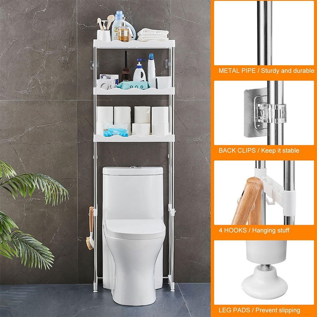 Étagère de salle de bain au-dessus des toilettes à 3 niveaux