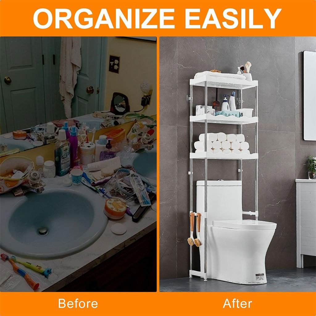 رف حمام متعدد الاستخداماتتوسيع المساحة: أبعاد 50.5 × 24.5 × 169.5 سم لتوفير المساحة فوق المرحاض.تخزين متعدد: يحتوي على 3 رفوف مفتوحة و2 خطافات لتعليق الأدوات اليومية.بنية قوية: مصنوع من الفولاذ الكربوني المطلي المقاوم للصدأ والصدمة.استخدام متعدد: يمكن وضعه فوق المرحاض أو الغسالة أو في المطبخ والشرفة والصالة.تجميع سهل: تركيب بسيط وخفيف الوزن دون الحاجة لأدوات معقدة.