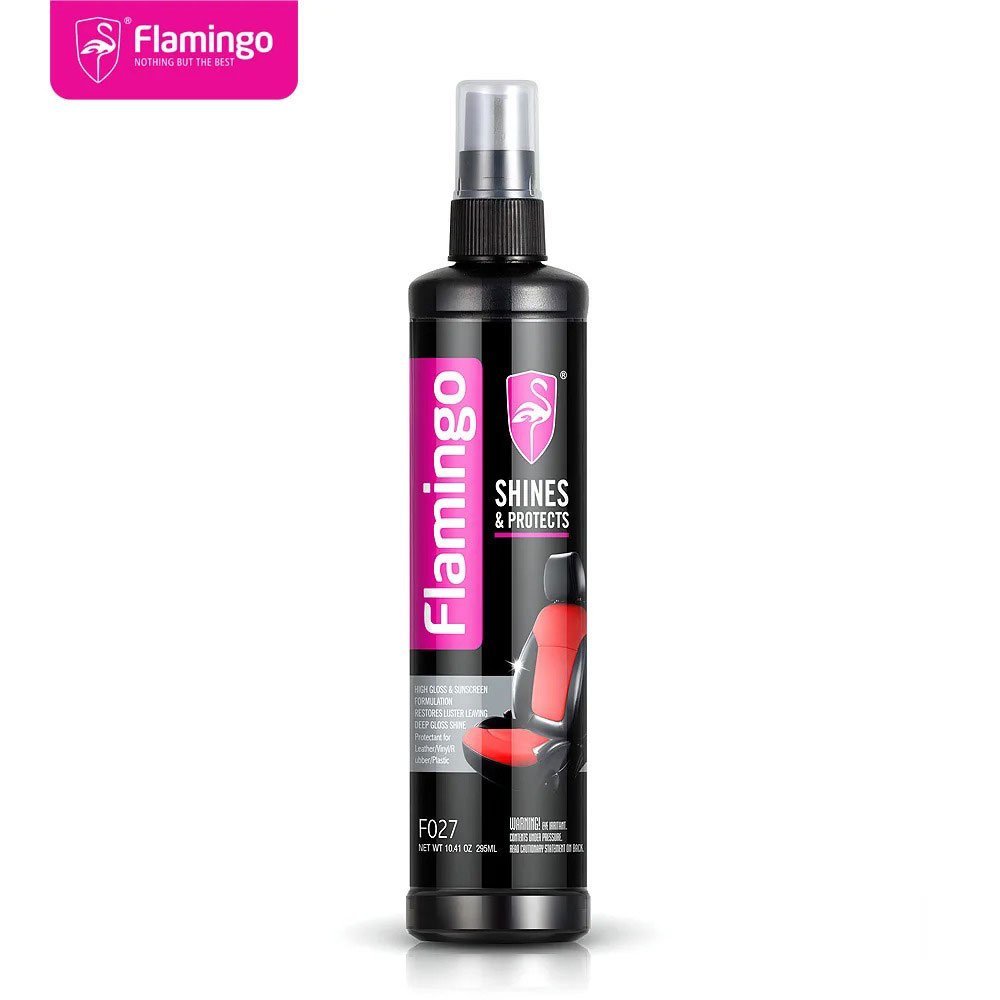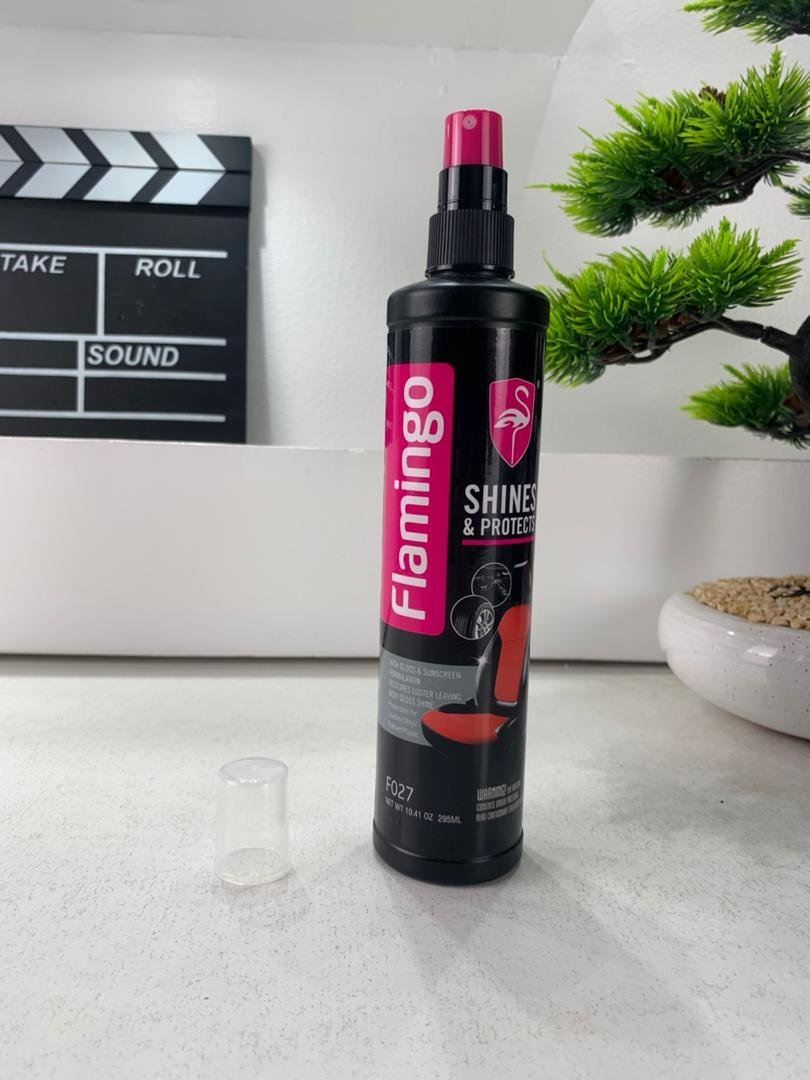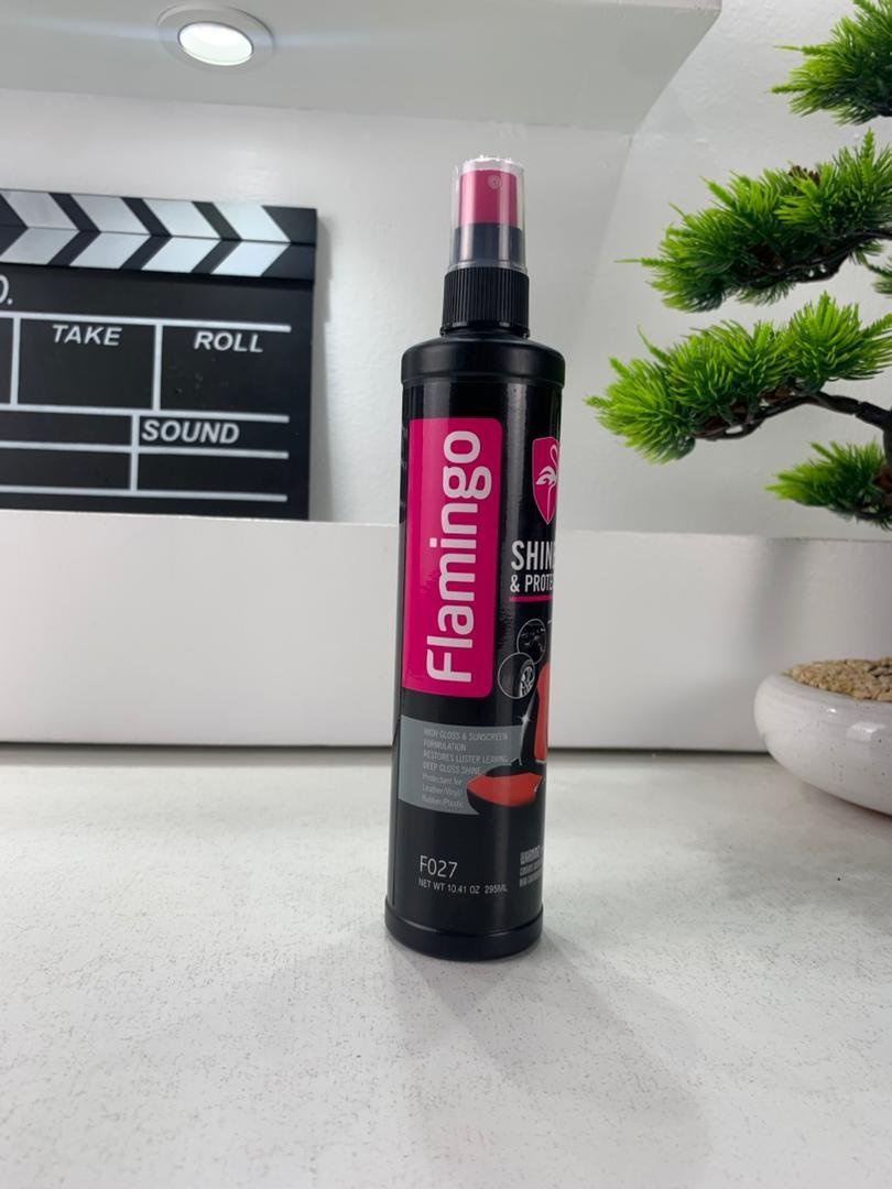 ✨🦩 – لمعان وحماية تدوم طويلاًتمتع بسطوع وحماية فائقة مع تركيبة السيليكون البوليمري المتطورة التي تتغلغل بعمق لتجديد وحماية الأسطح من الفينيل، المطاط والبلاستيك.✅ المميزات☀️ يقلل من تأثير الأشعة فوق البنفسجية ويحافظ على الألوان.🎨 يعيد البريق الطبيعي ويبرز جمال السطح.🛡️ يمنع التشققات والتلف المبكر.🚗 يحمي من التآكل والخدوش اليومية.📝 طريقة الاستخدامنظّف السطح جيدًا بمنظف عالي الجودة.ضع Flamingo Shine & Protect بقطعة قماش نظيفة أو إسفنجة (في حالة البخاخ).افرد المنتج بالتساوي، اتركه لبضع دقائق ليتغلغل، ثم امسح الفائض لتحصل على لمعان وحماية فائقة. 💡 للحصول على أفضل النتائج: طبّق طبقتين عند الحاجة وحافظ على الاستخدام المنتظم.✨ اجعل سيارتك ومقتنياتك دائمًا لامعة، محمية وجذابة مع Flamingo!