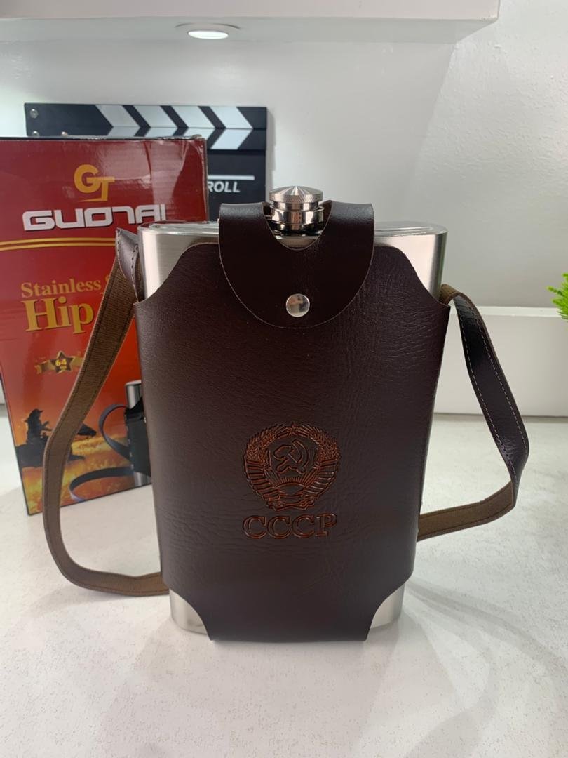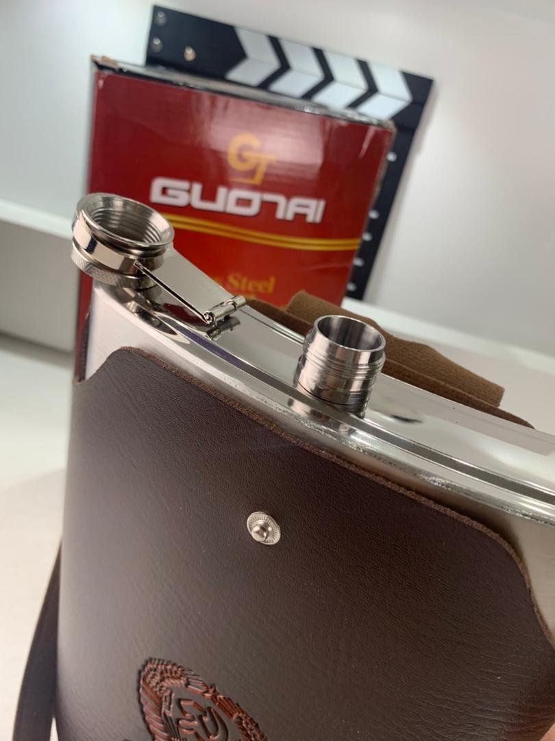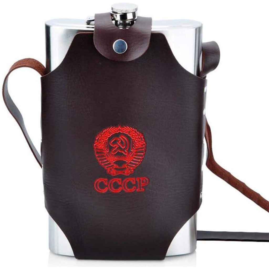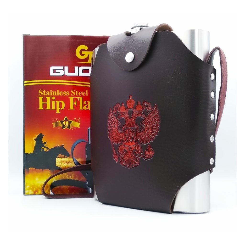 Flasque Métallique Portable 1800ml en Acier Inoxydable 18/8 avec Étui en Cuir pour Activités Extérieures