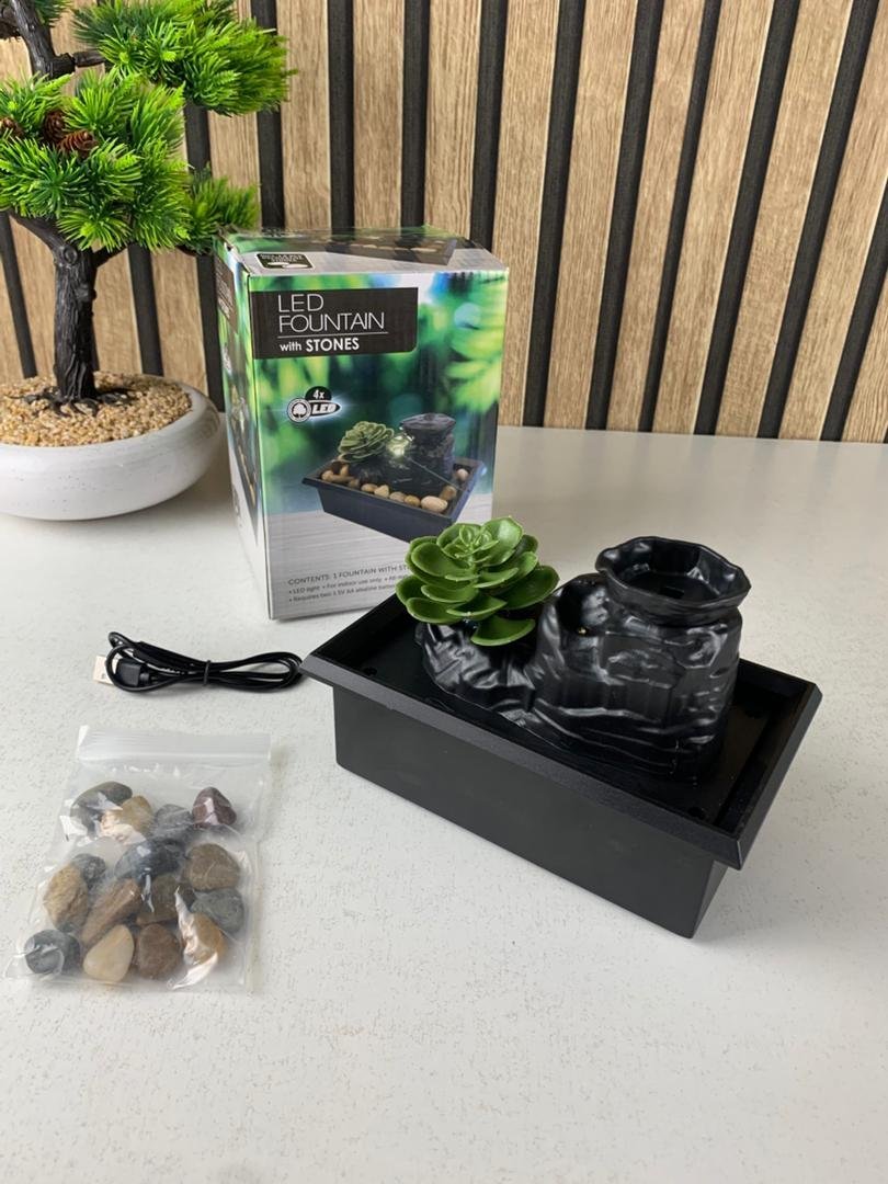Fontaine à eau cascade avec éclairage LED pour décoration intérieure et ambiance V2