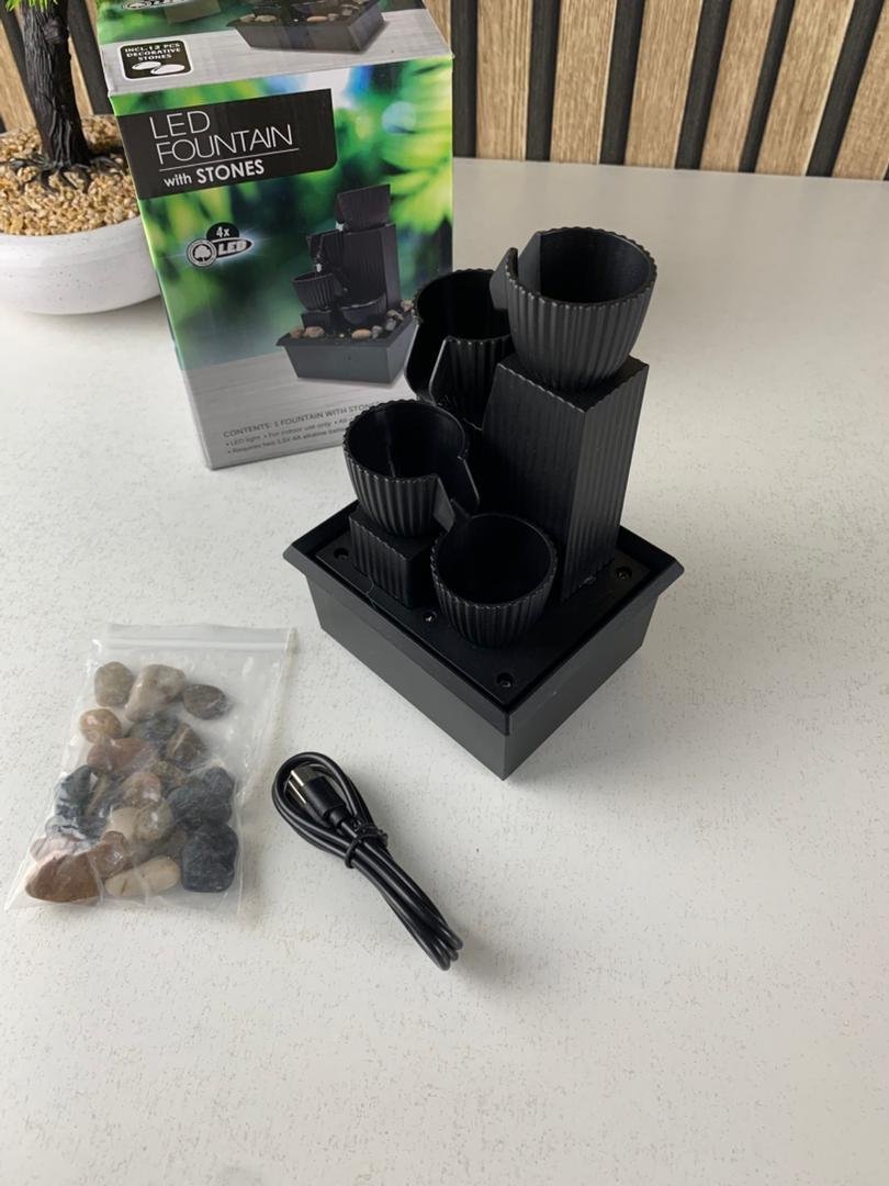 🌊✨ نافورة مائية مكتبية USB – أناقة، طاقة إيجابية وجذب للرخاءامنح مكتبك أو مساحة عملك لمسة فاخرة ومهدّئة مع هذه النافورة المائية المصغّرة التي تعمل عبر USB. صوت الماء المتدفق يخلق جوًا من الاسترخاء والطمأنينة، مما يساعد على زيادة التركيز والإنتاجية خلال اليوم.⭐ المميزات الرئيسية :1️⃣ تصميم أنيق ومريح للأعصاب لوحة مائية صغيرة تضيف جمالًا وهدوءًا لأي مكتب أو غرفة. صوت الماء المنساب يساعد على الاسترخاء وتقليل التوتر أثناء العمل.2️⃣ جذب الرزق والطاقة الإيجابية تدفق الماء يرمز إلى تدفق المال والوفرة، ما يجعلها قطعة مثالية لجذب الحظ والخير حسب مفاهيم طاقة الفينغ شوي.3️⃣ إضاءة LED دافئة مزودة بإضاءة LED صفراء تمنح إشراقة لطيفة تضيف دفئًا وجمالًا إلى المكان، خصوصًا ليلاً.4️⃣ حجارة تزيينية طبيعية تأتي النافورة مع حِصى طبيعي غير منتظم الشكل ليمنحها مظهرًا طبيعيًا يزيد من جمالية الديكور.5️⃣ استخدامات متعددة صغيرة الحجم وسهلة الوضع في أي مكان: غرفة النوم، المكتب، غرفة الجلوس، مكتب العمل، طاولة القهوة أو ديكور التلفاز.📌 المواصفات التقنية :نوع المنتج: نافورة ماء مكتبية USBالإضاءة: LED بلون أصفرالحجم: 16.51 × 10 × 10 سمالوزن: حوالي 511 جمالتشغيل: USB Type-C بقدرة 5Vالاستخدام: ديكور للمكتب، غرفة النوم، الصالون، طاولة جانبية…المرفقات: كيس حجارة تزيينية (الكمية قد تختلف)🧴 طريقة الاستخدام :أضِف كمية مناسبة من الماء داخل الحوض.وصّل الكابل USB بمصدر طاقة.شغّل المفتاح واستمتع بصوت الماء الهادئ وإضاءة LED المريحة.📦 محتويات العلبة :1 × كيس حجر تزييني1 × كابل USB1 × دليل الاستخدام1 × نافورة ماء مكتبية USB