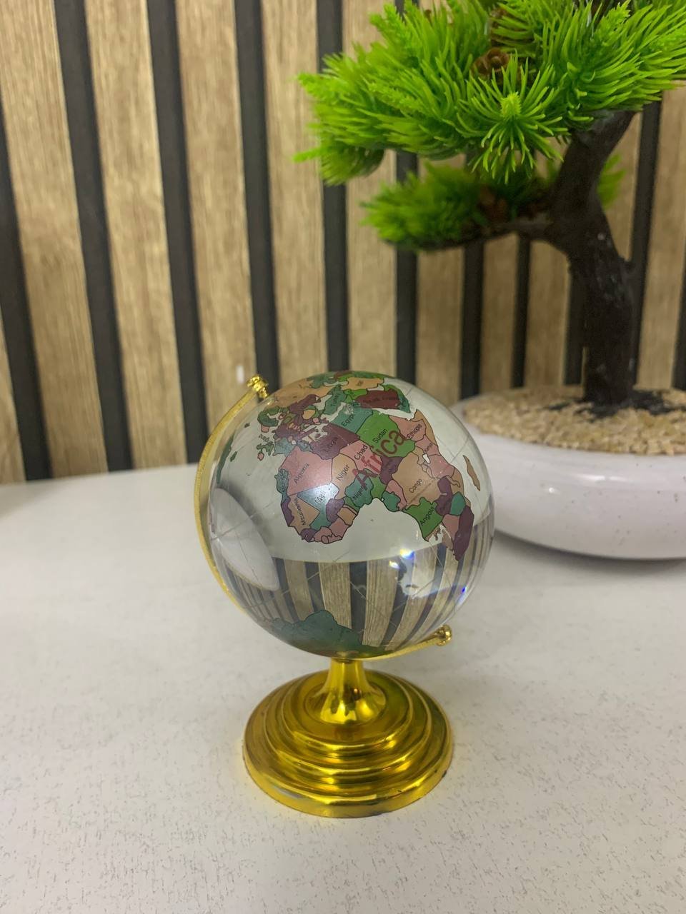 Globe en cristal décoratif rotatif parfait pour un bureau – كرة كريستالية بخريطة العالم