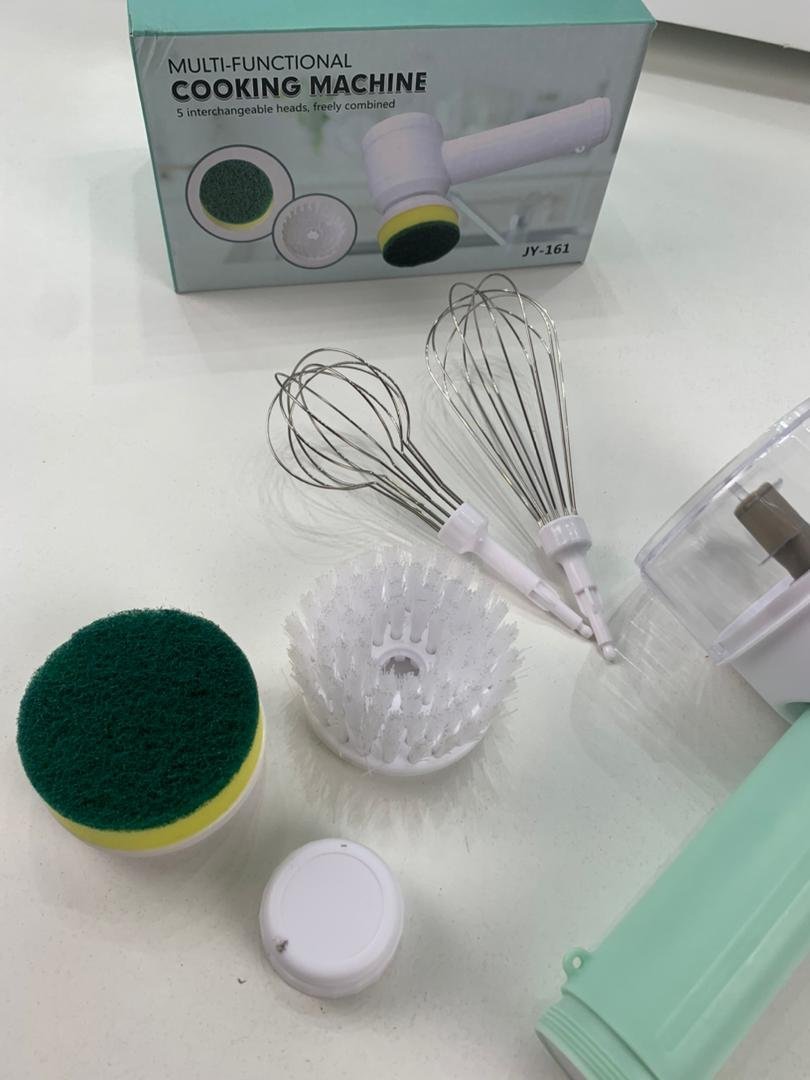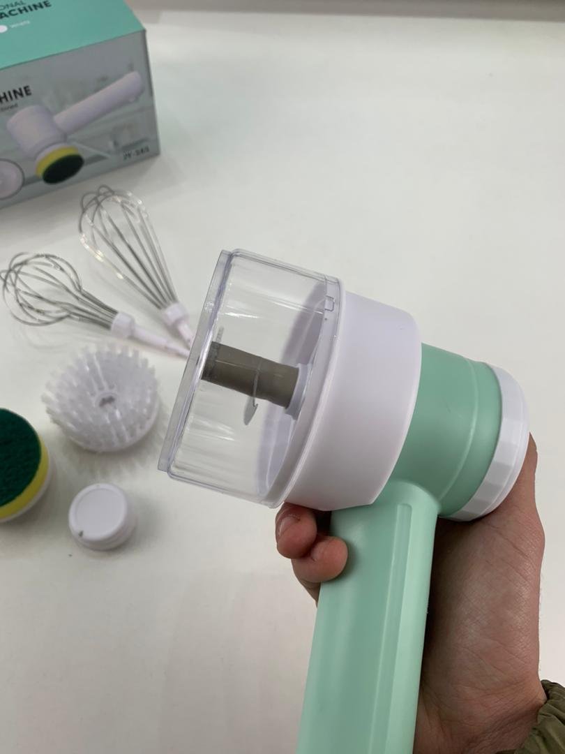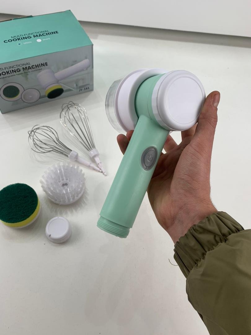 جهاز متعدد الوظائف – مفرمة كهربائية لاسلكية مزودة بـ 6 رؤوس قابلة للتبديل، تعمل كمفرمة خضروات وثوم، مخفوق بيض ودقيق، منظف حوض، منظف فرن، وغسالة أطباق صغيرة. ثلاث سرعات دوران – إمكانية ضبط السرعة بين 200، 600 و1000 دورة/دقيقة، حيث السرعة المنخفضة مثالية للتقطيع والخلط، والمتوسطة لغسل الأطباق، والعالية لتنظيف الأسطح المختلفة. مفرمة خضروات – مزودة بوعاء سعة 15 أونصة وشفرات من الفولاذ المقاوم للصدأ لفرم الثوم، الزنجبيل، البصل والفلفل بسرعة. وظيفة غسالة أطباق – تأتي مع رأس إسفنجة ورأس فرشاة نايلون لتنظيف الأطباق والأواني بفعالية. منظف متعدد الاستخدامات – يشمل فرشاة تنظيف للأحواض، الأرضيات، المواقد، الأفران، القوالب، الأدوات المطبخية، وحتى أحواض الاستحمام ودورات المياه.