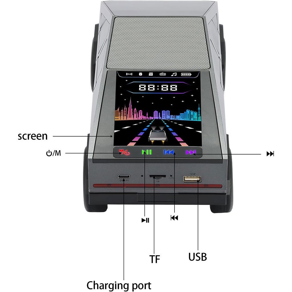 Haut parleur portable Bluetooth en forme de voiture pick-up avec écran et lumière LED festive