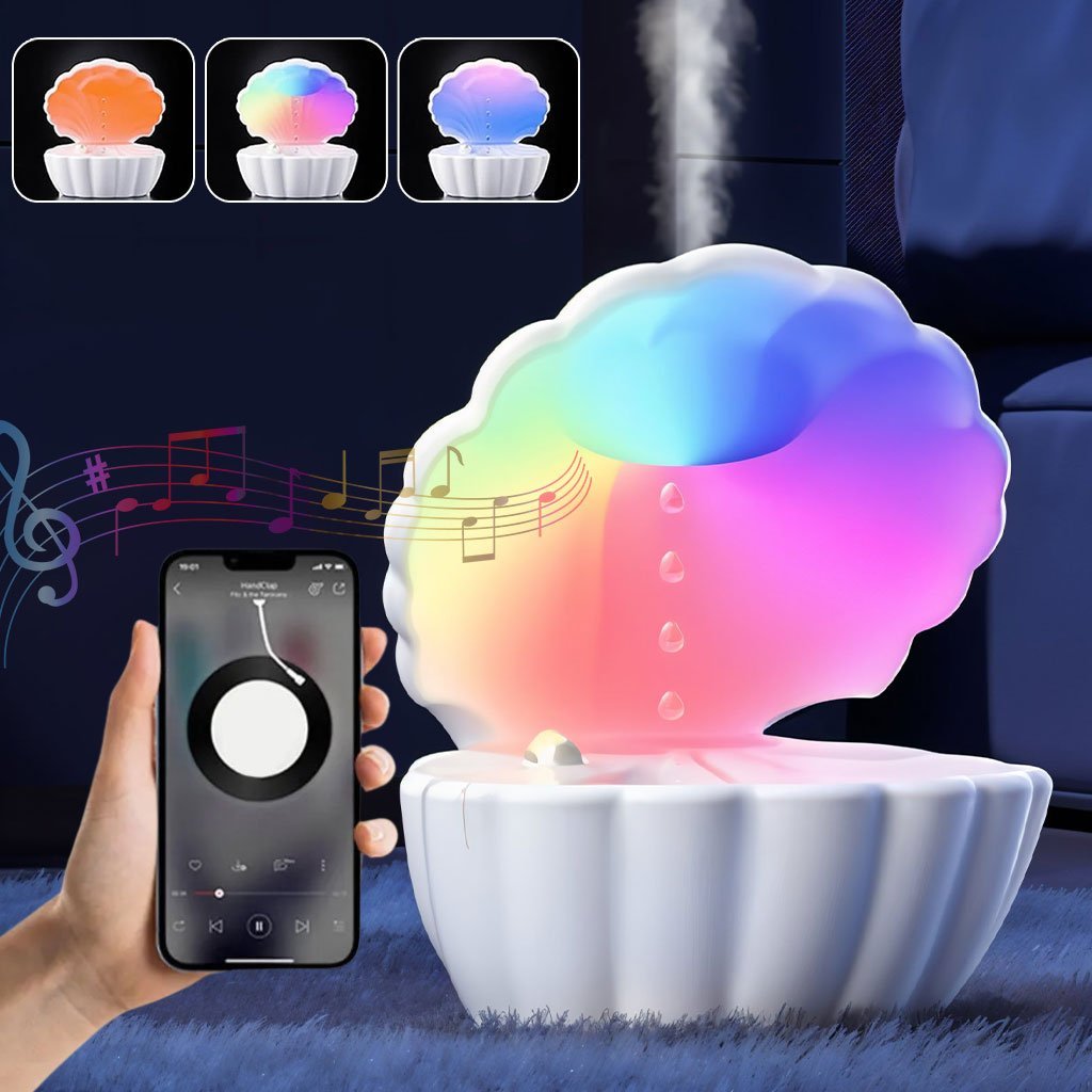Humidificateur d’air et Haut Parleur BT avec lumière d’ambiance antigravité 550ml – مكبر صوت ومعطر جو على شكل محار البحر