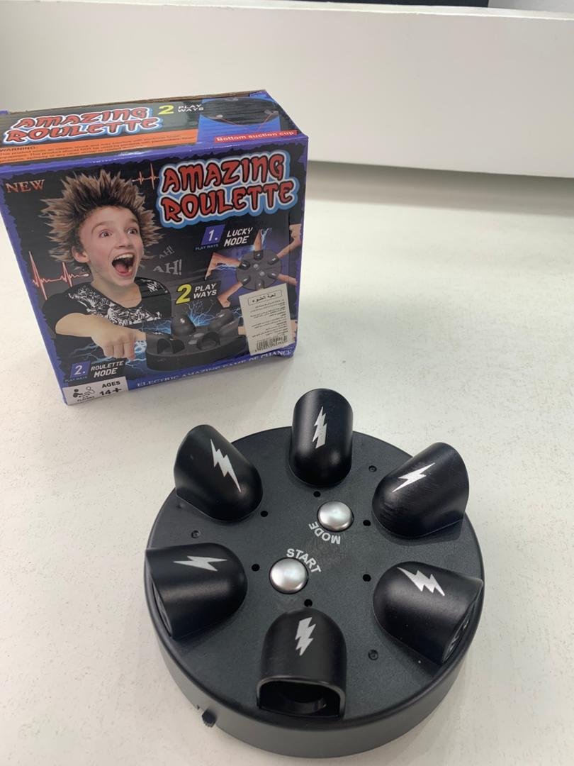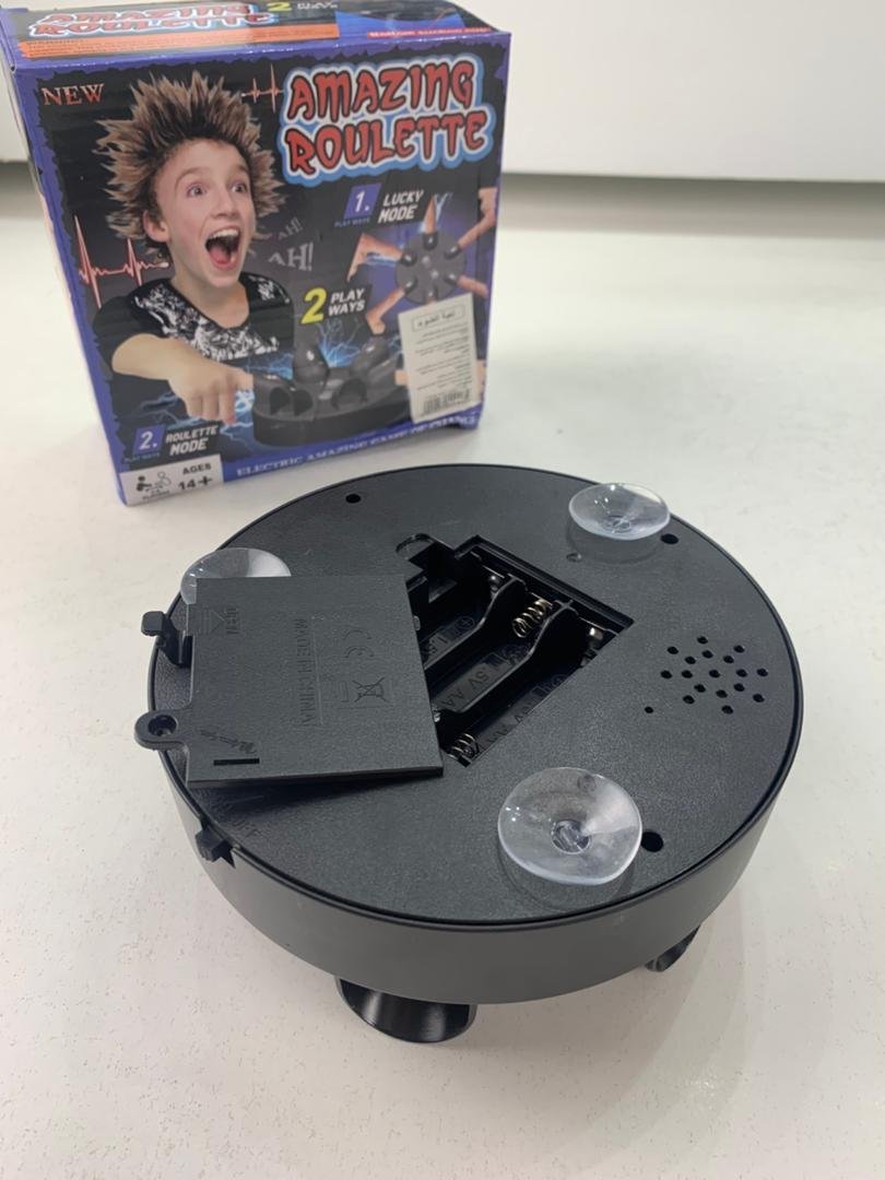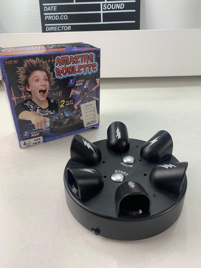 لعبة روليت الصدمة – Roulette Shot Reloaded Shockللعب بين 2 إلى 6 أشخاص: لعبة ممتعة للحفلات، خاصةً في السهرات، تدمج بين الإثارة والضحك بفضل جهاز كشف الكذب الذي يصدر صدمات كهربائية خفيفة. وضع الحظ: اضغط على زر “Mode” لاختيار عدد اللاعبين، ثم على “Start”. تدور الأضواء مع الموسيقى، وعندما تتوقف، يتلقى الخاسر صدمة غير متوقعة! وضع الروليت: يختبر سرعة ردة الفعل. أدخل إصبعك في الفتحة واضغط “Start”. إذا لم تضغط الزر عند إضاءة المصباح أمامك، ستتعرض لصدمة كهربائية خفيفة. مواد عالية الجودة: مصنوع من بلاستيك ABS آمن وصديق للبيئة، لا يشكل خطرًا على صحة الإنسان. يعمل بـ 3 بطاريات AA (غير مرفقة).