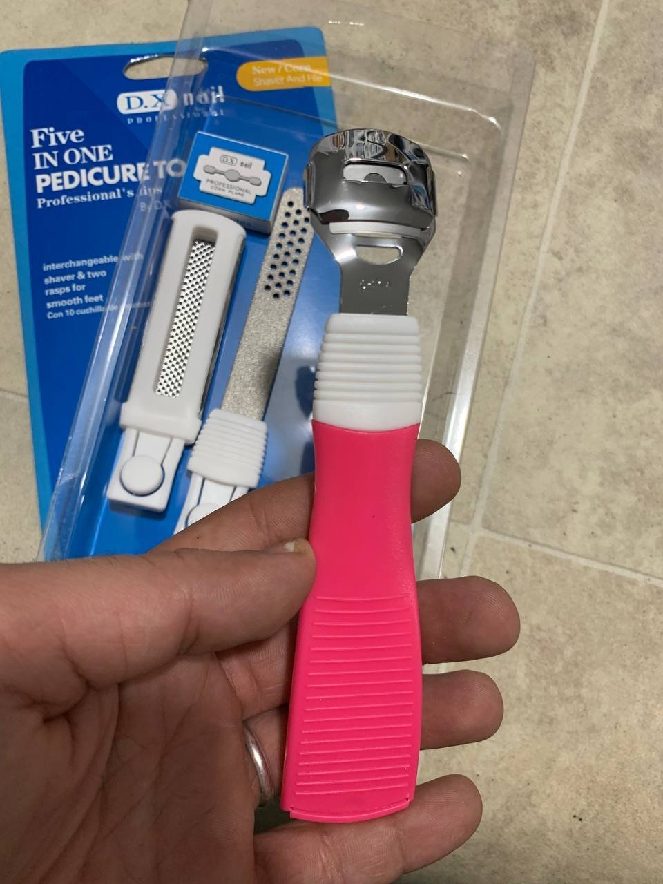 المميزات:قص الجلد الميت، الكيوتيكل والأظافر يدوياً — مثالي لفن الأظافر.مصنوع من فولاذ عالي الجودة ومتينة للاستخدام اليومي.أداء فعال مع حِرفية ممتازة.تصميم أنيق يوفر أفضل تجربة يومية.مناسب للاستخدام في المنزل أو الصالونات والمنتجعات.أداة بديكير 3 في 1:تحتوي على مبرد ومسطرات خاصة تركب بإحكام.تصميم مريح بمقبض ناعم لاستخدام مريح لليد اليمنى أو اليسرى.تحذير: يجب التعامل مع الشفرة بحذر شديد وعدم استخدامها على الجلد الحي.يُفضّل تنظيف الأداة بعد كل استخدام وحفظها بعيداً عن الأطفال.الأبعاد: حوالي 12 × 22.3 سم اللون: وردي محتويات العبوة: مبرد قدم 3 في 1
