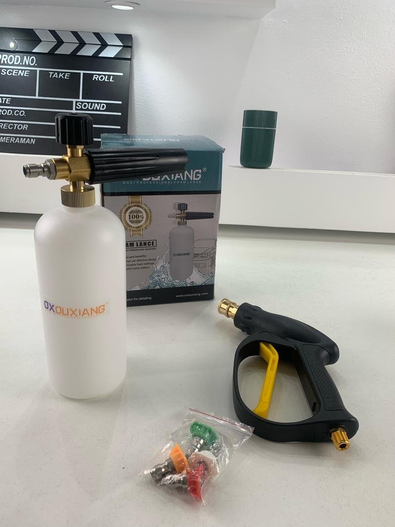🚗 مجموعة غسيل السيارات بالضغط العالي – طقم متكامل للمحترفين 🧼 رأس رش مع خزان صابون + 5 رؤوس بخ مختلفة 🔧 تركيب سهل بفضل وصلة سريعة 1/4″ وتوافق مع خرطوم M22💦 5 زوايا رش (من 0° حتى 60°) للتحكم الكامل: من تيار مركز إلى رذاذ واسع 🧽 مثالية لتنظيف السيارة، الأرضيات، الأسطح، الأسقف والمزيد!💥 تنتج رغوة سميكة تعلق على السطح وتذيب الأوساخ بكفاءة. مناسبة للمحترفين والهواة على حد سواء. ///