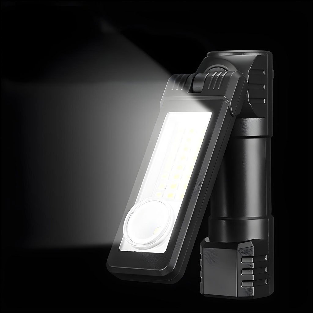مصباح LED محمول بقبضة مغناطيسية 🔦شحن سريع بمنفذ USB-C:استعد للعمل بسرعة بفضل منفذ الشحن السريع الذي يقلل فترات التوقف.مصدران للإضاءة:مزود بضوء كشاف مركز وإضاءة عاكسة لتغطية جميع احتياجات العمل.متين لمختلف الظروف الجوية:تصميم مقاوم للمطر والعوامل الخارجية للاستخدام في الهواء الطلق دون قلق.مرونة عالية في الإضاءة:قابل للدوران بزوايا متعددة مع قاعدة مغناطيسية قوية لتثبيته على أي سطح معدني بسهولة