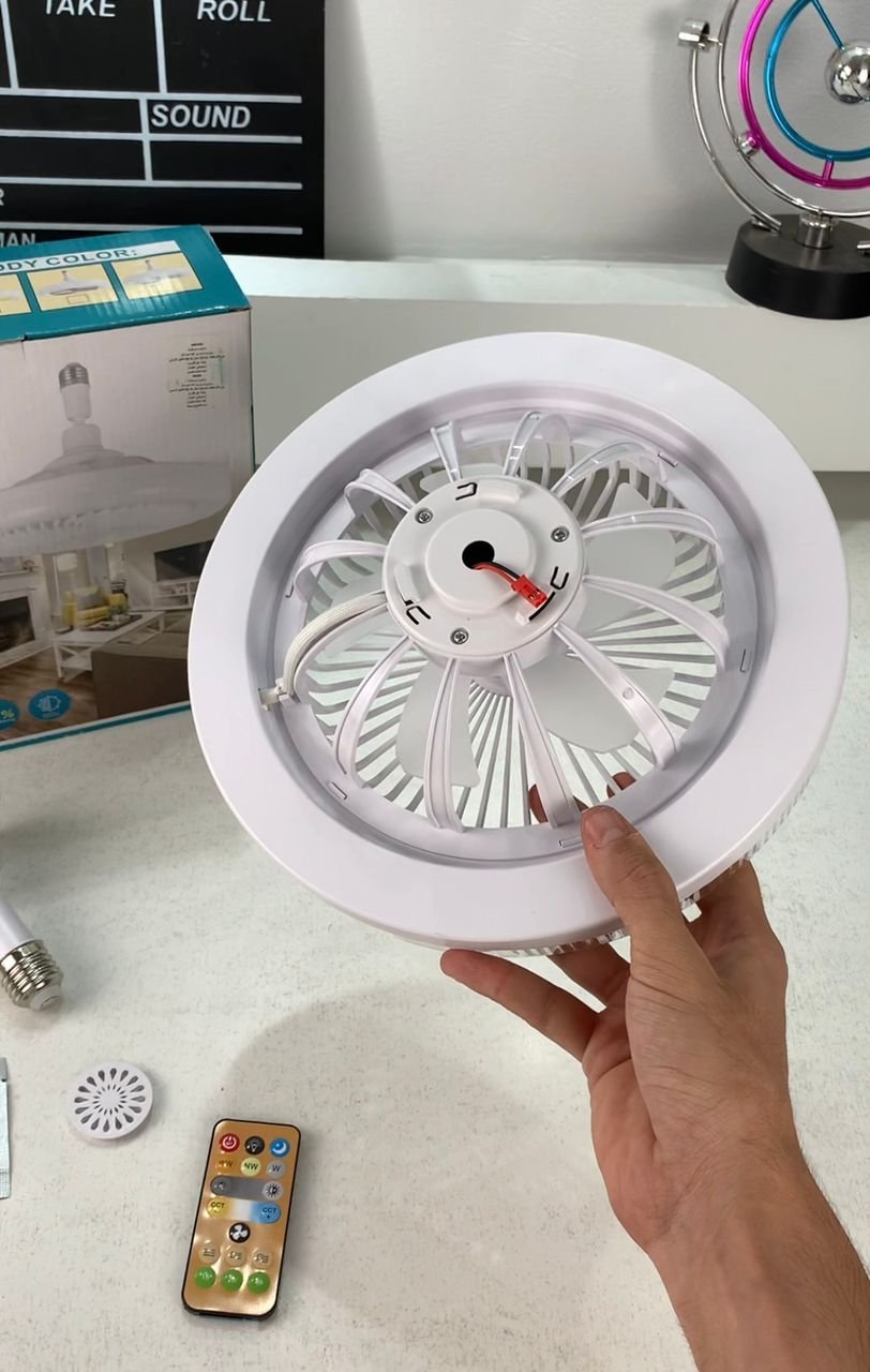 🌬️💡 مروحة سقف + مصباح إضاءة بتصميم عصري 2 في 1✔️ تصميم ذكي ومزدوج : مروحة سقف مدمجة مع مصباح إضاءة، شكل عصري وأنيق أكثر أماناً وفعالية من المصابيح التقليدية. استمتع بضوء قوي وهواء منعش في نفس الوقت، مع إمكانية تشغيل كل وظيفة بشكل مستقل حسب الحاجة.🛠️ تركيب سهل : التثبيت بسيط جداً مثل تركيب لمبة عادية (E27).⚙️ 3 سرعات + 3 أوضاع إضاءة :سرعات المروحة: نسيم خفيف 🌬️ / سرعة متوسطة ⚡ / هواء قوي 💨أوضاع الإضاءة: ضوء أبيض ❄️ / ضوء دافئ 🔥 / ضوء طبيعي 🌿📐 المواصفات التقنية :الأبعاد : D260 × 120 ممالقدرة : 30Wقدرة المروحة : 4Wالجهد الكهربائي : 86-265V📦 محتويات العلبة :مروحة + مصباح سقفجهاز تحكم عن بعد✨ حل عملي، عصري واقتصادي يمنحك هواء بارد وضوء مريح في آن واحد.