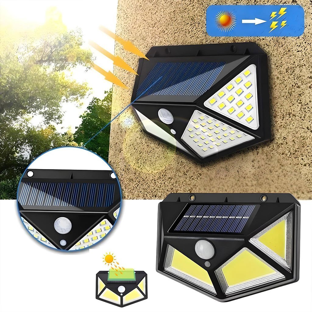 مصابيح شمسية خارجية Hmcity مع مستشعر حركة PIR مطور3 أوضاع إضاءة:وضع الأمان (الإضاءة عند مرور الأشخاص).إضاءة مستمرة طوال الليل.تحكم ذكي بالسطوع (إضاءة خافتة طوال الليل وتزداد عند الحركة).لوح شمسي عالي الكفاءة: خلايا سيليكون أحادي البلورة بنسبة تحويل تصل إلى 20.5٪ لتوليد طاقة أكبر بنسبة 15٪ مقارنة بغيرها.إضاءة أوسع: مزودة بـ 100 LED وزاوية إضاءة 270° لتغطية مساحة تصل إلى 30 متر.مقاومة للماء IP65: مصنوعة من بلاستيك ABS مقاوم للحرارة والتآكل، لضمان عمر أطول.