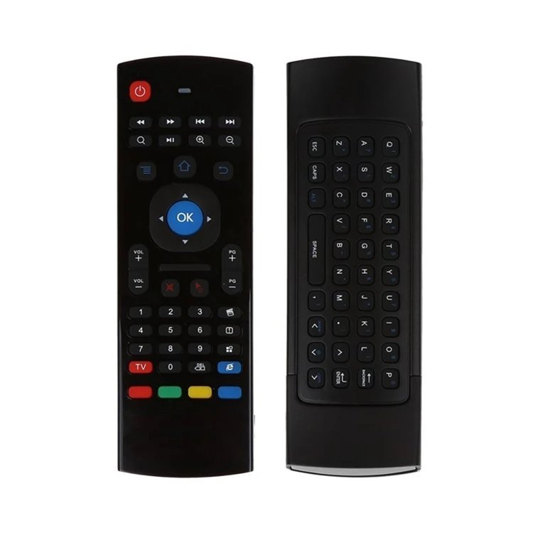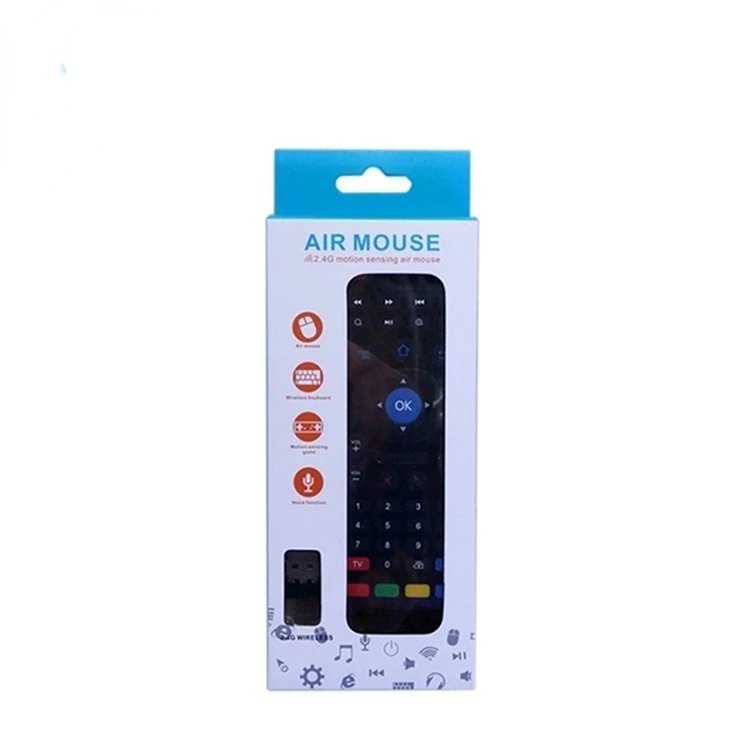 وصف المنتج (فأرة طائرة 2.4G):فأرة طائرة لاسلكية 2.4Gلوحة مفاتيحمفتاح تشغيل/إيقاف لمؤشر الفأرةتعمل ببطاريتين AAA (غير متوفرة)دعم التحكم بالأشعة تحت الحمراء وبعض الأزرار للتعلم البرمجيمدى التحكم عن بعد يصل إلى 15 متراستهلاك طاقة أقل من 10mA أثناء العملمستشعرات حركة 6 محاور تدعم الألعاب الحركيةمتوافقة مع أنظمة Android، Windows، Mac OS، Linux